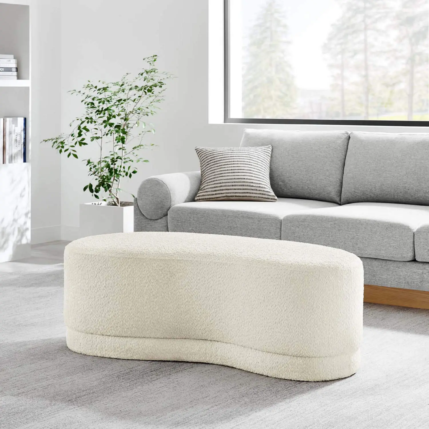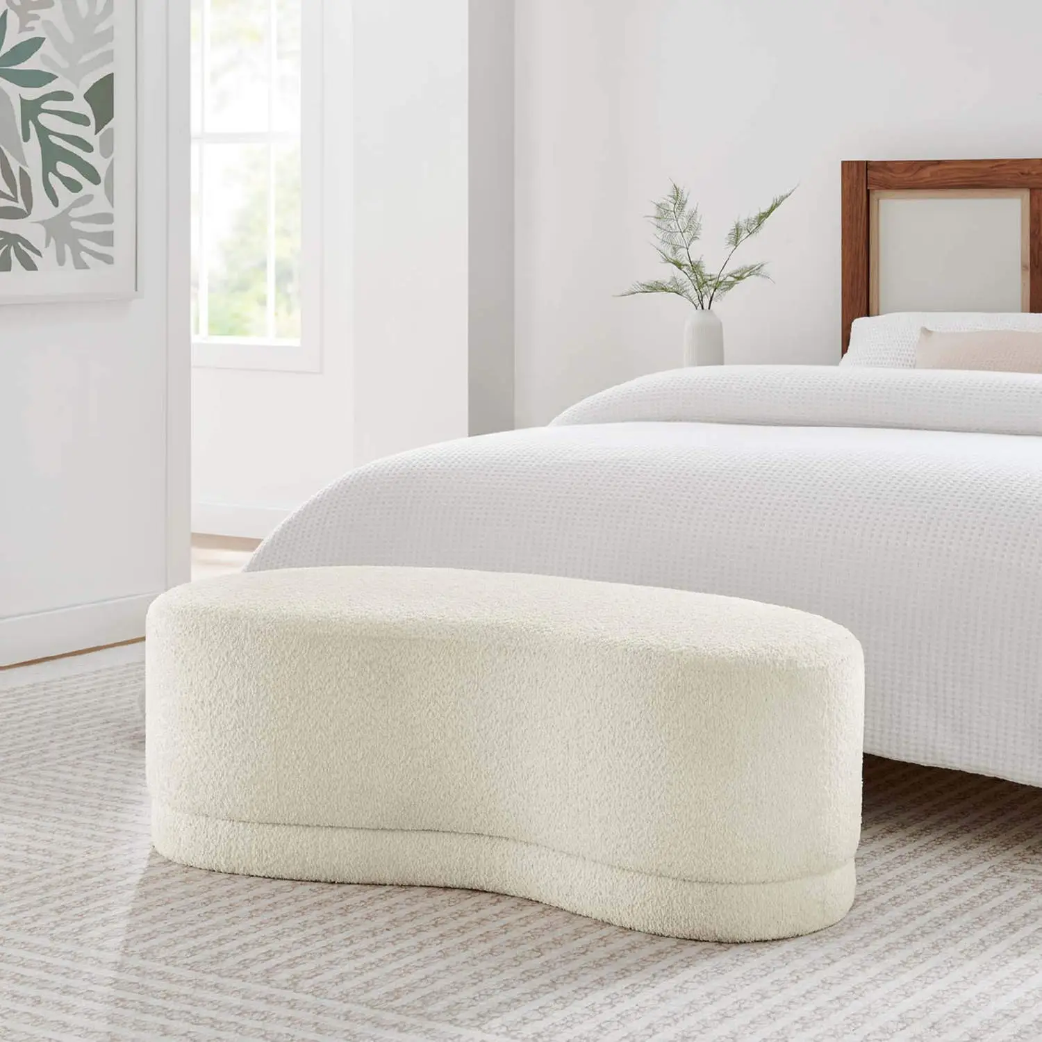 Modway Nimbus 48" Curved Ottoman Bench in Cream Chenille Fabric