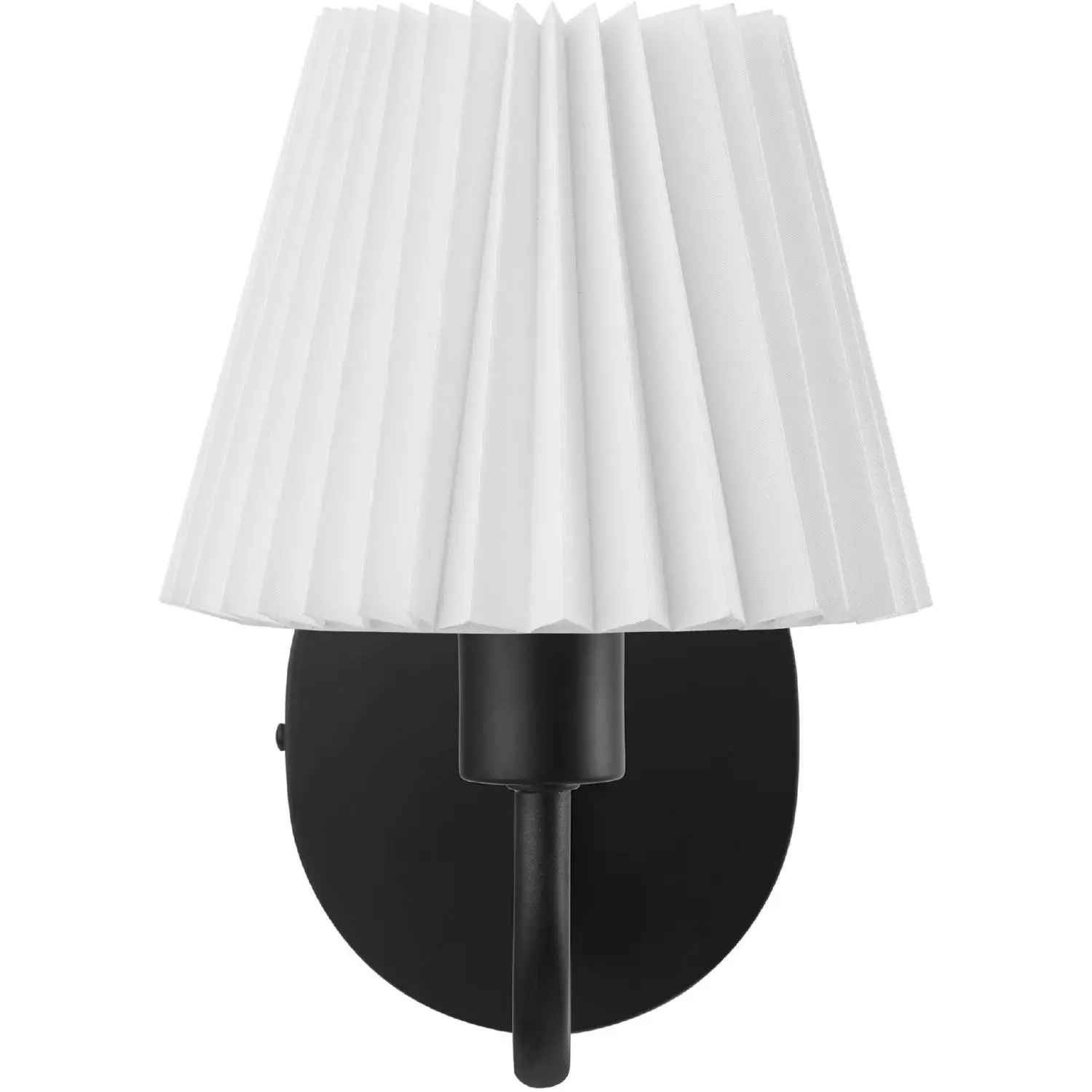 Modway Wave Squiggle Arm Wall Sconce in Black Metal & White Fabric