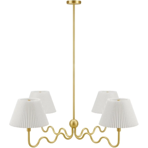 Modway EEI-6875-BRA Wave Squiggle 4 Arm Ceiling Pendant Light Brass Metal White Fabric