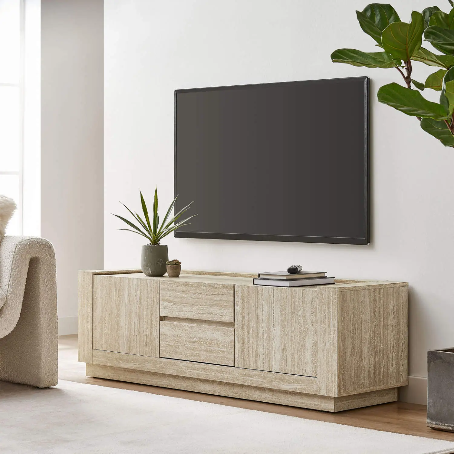 Modway EEI-6907-TRA Hollis 59" TV Stand Brown Travertine Laminate