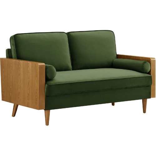 Modway Kellan Loveseat in Moss Green Performance Velvet & Walnut Finish