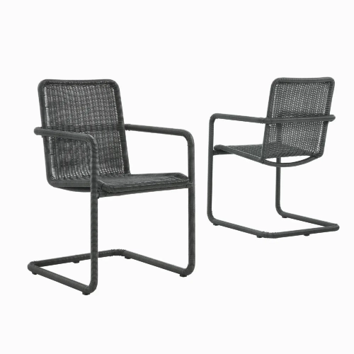 Modway EEI-7014-SLA Abacus Outdoor Dining Chair Slate Black Finish Wicker (Set of 2)