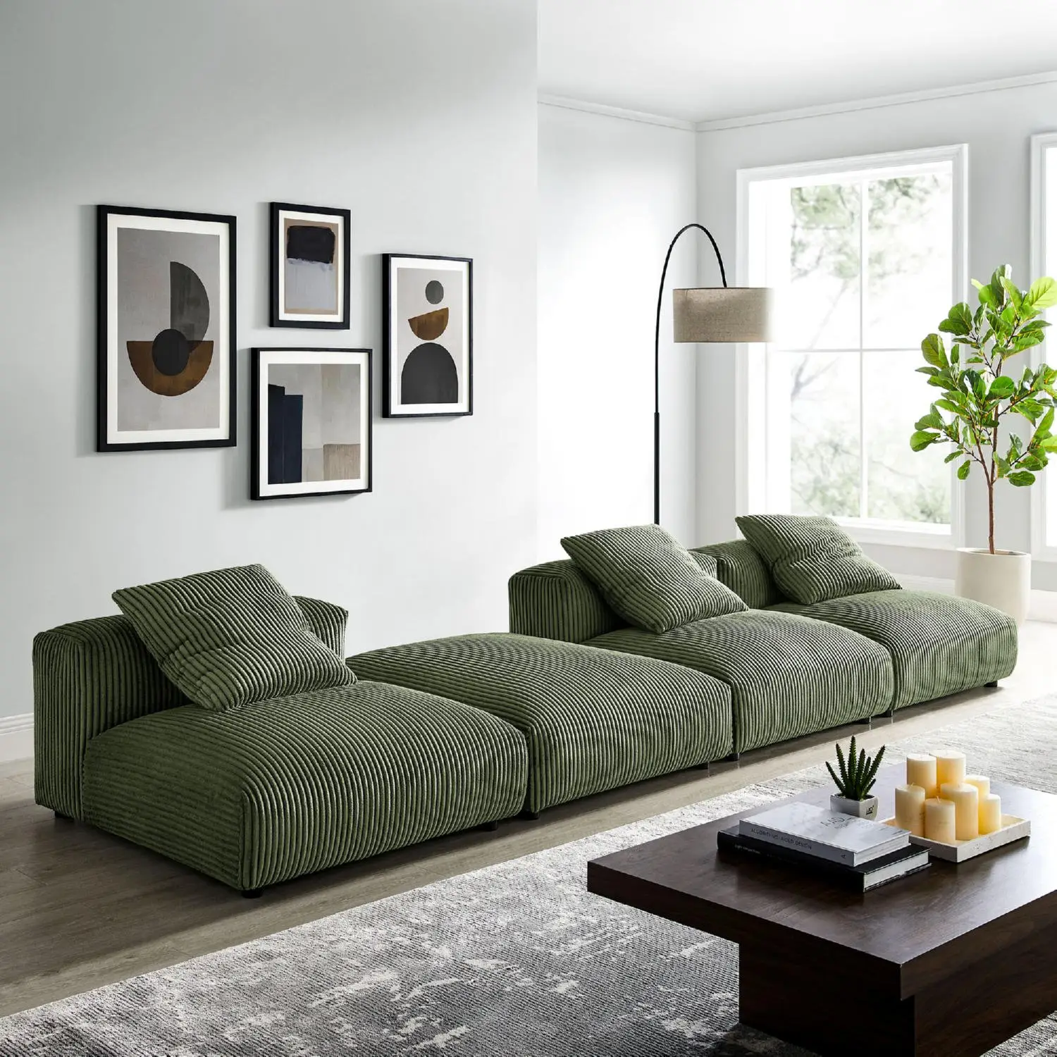 Solace 4 Piece Modular Sectional Sofa in Fern Green Corduroy