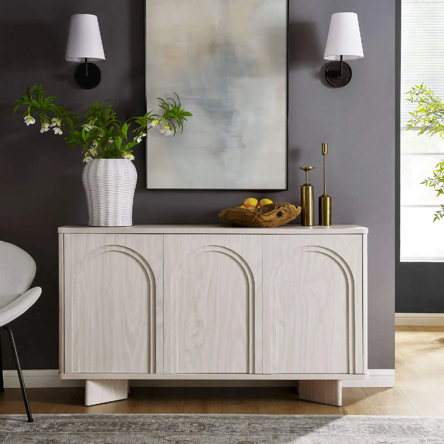 Modway Flux Arched 3 Door Sideboard in White Washed Finish