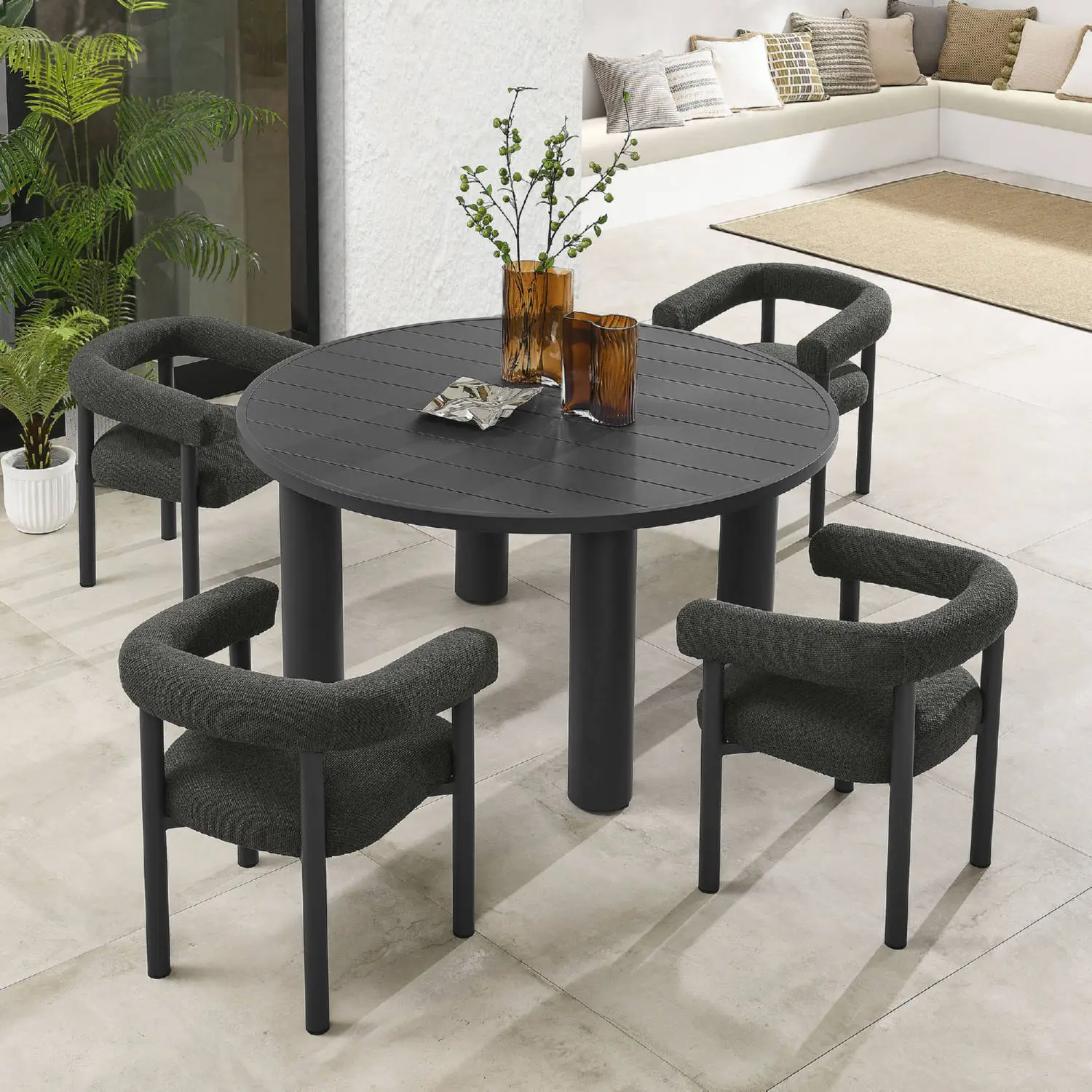 • Set includes: 60" round aluminum dining table and four arm chairs
