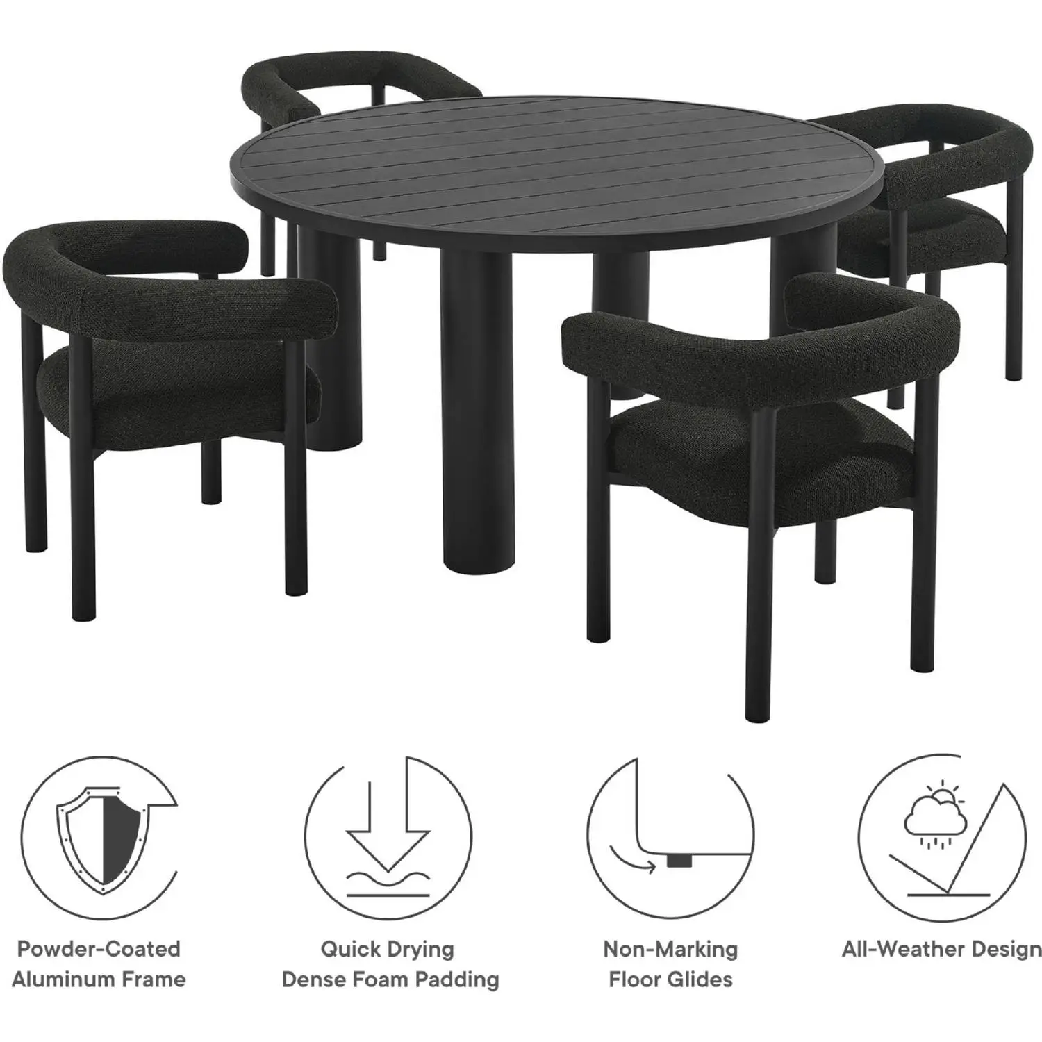 Modway Nautica 5 Piece Round Outdoor Dining Table Set in Gray Fabric & Graphite Aluminum