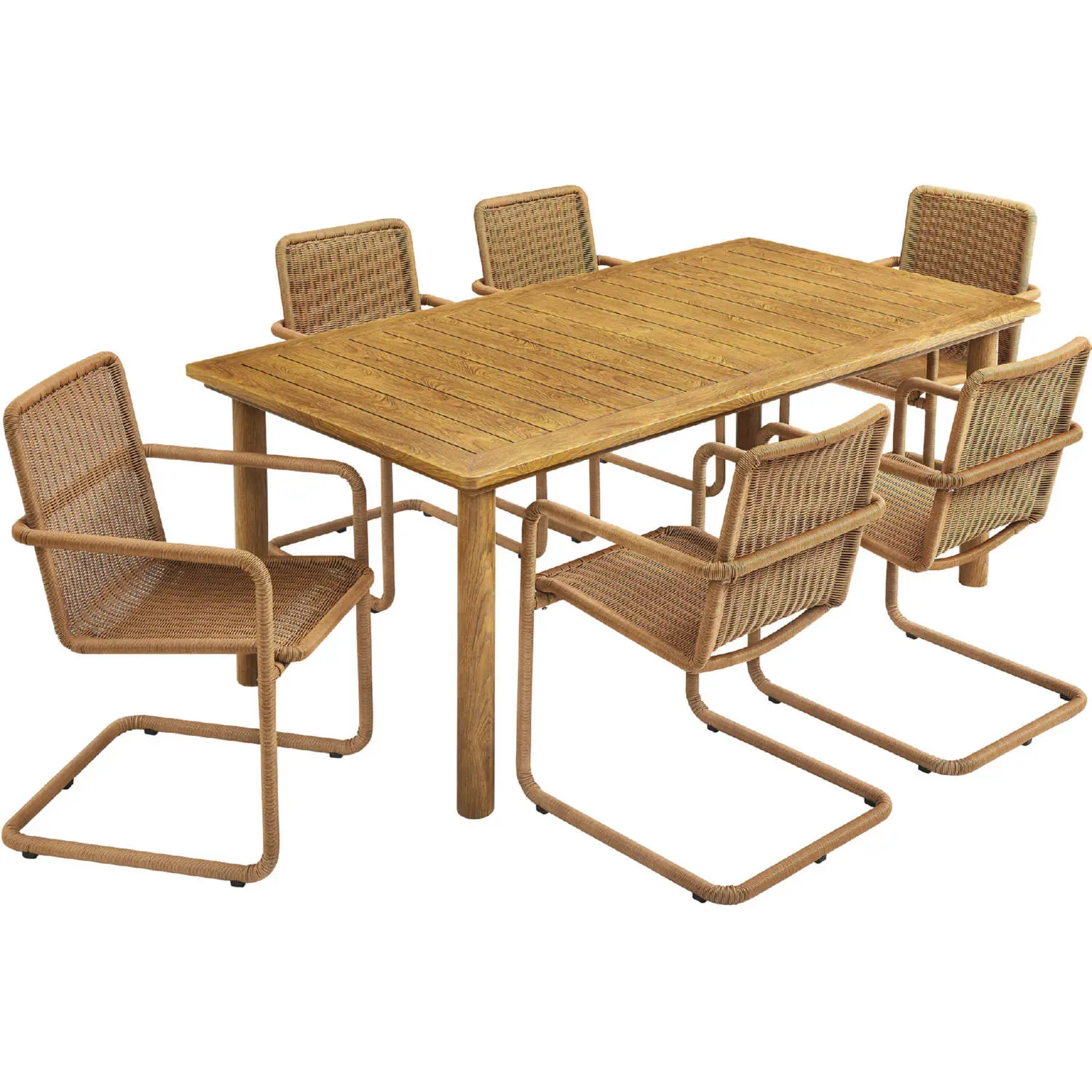 Modway EEI-7073-NAT-NAT Abacus 7 Piece Outdoor Dining Table Set Wood Finish Metal Natural Rattan