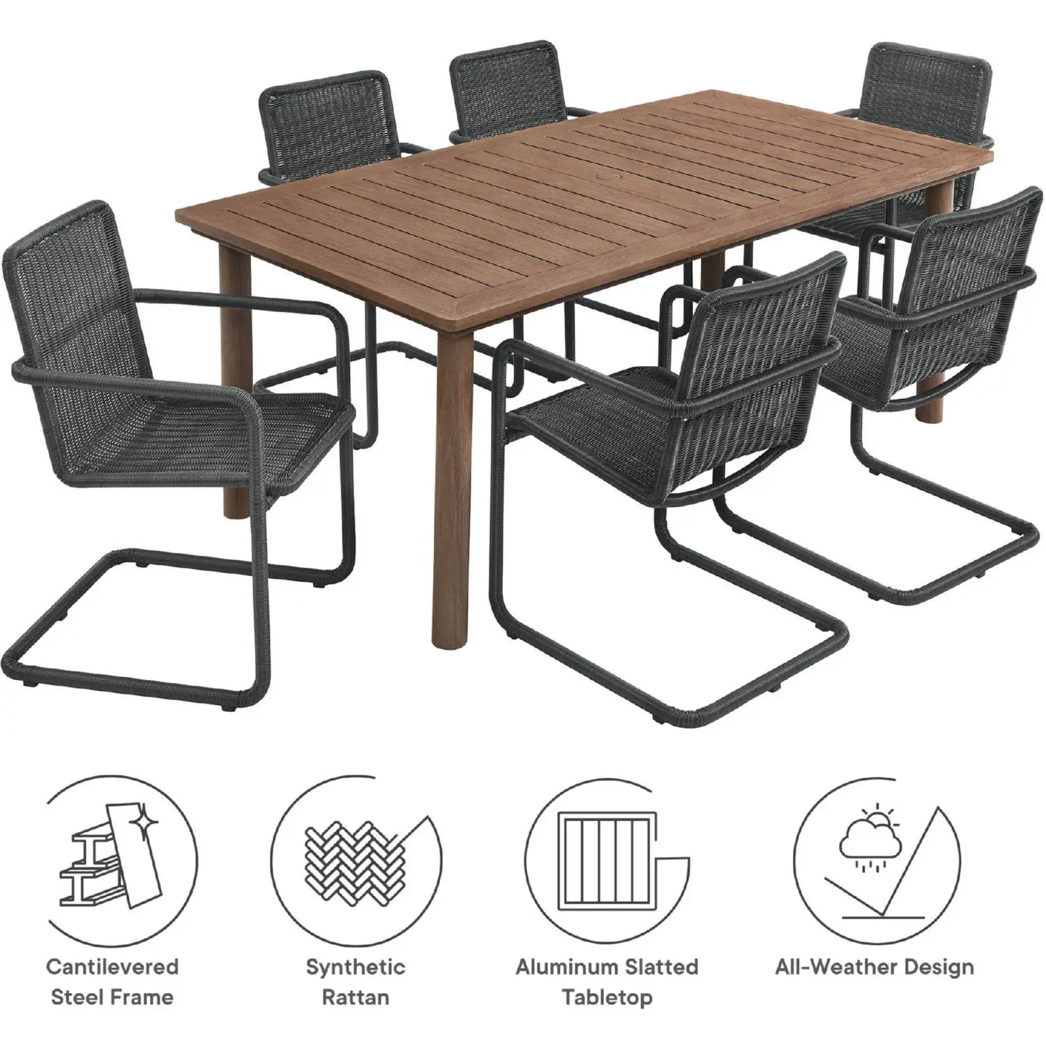 • Set includes: 1 outdoor dining table and 6 outdoor dining chairs