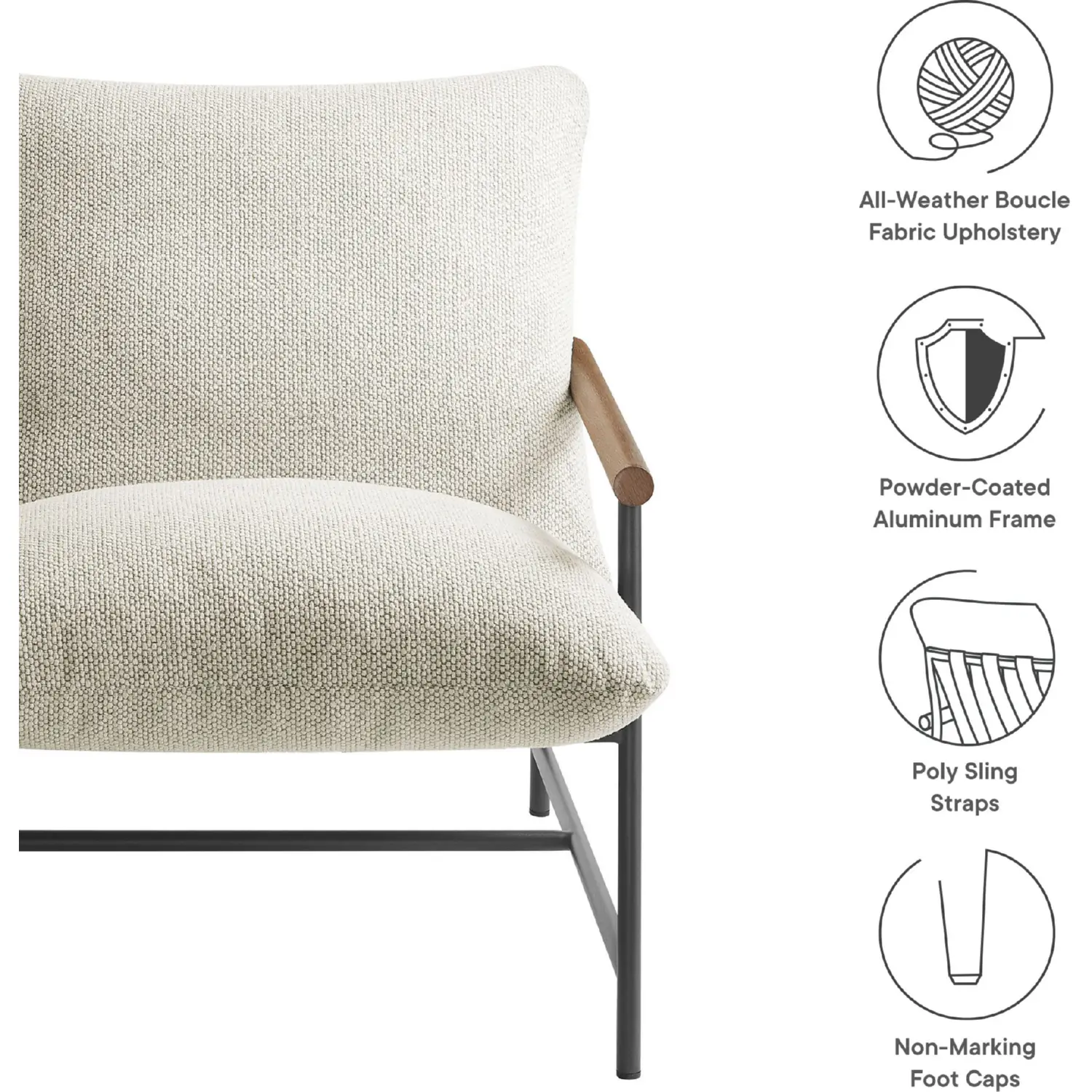 Modway EEI-7118-IVO Raya Outdoor Sling Lounge Chair Ivory Boucle Fabric Faux Wood Metal