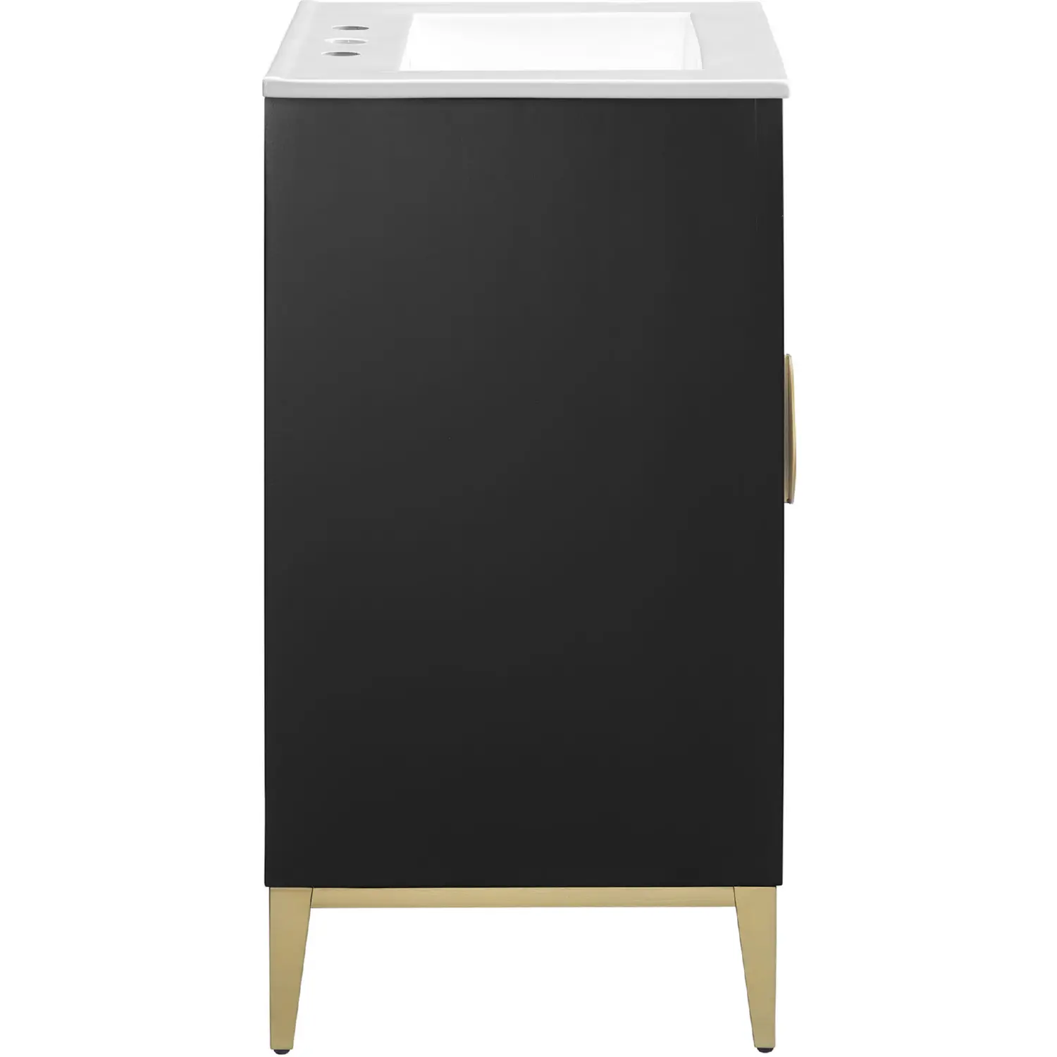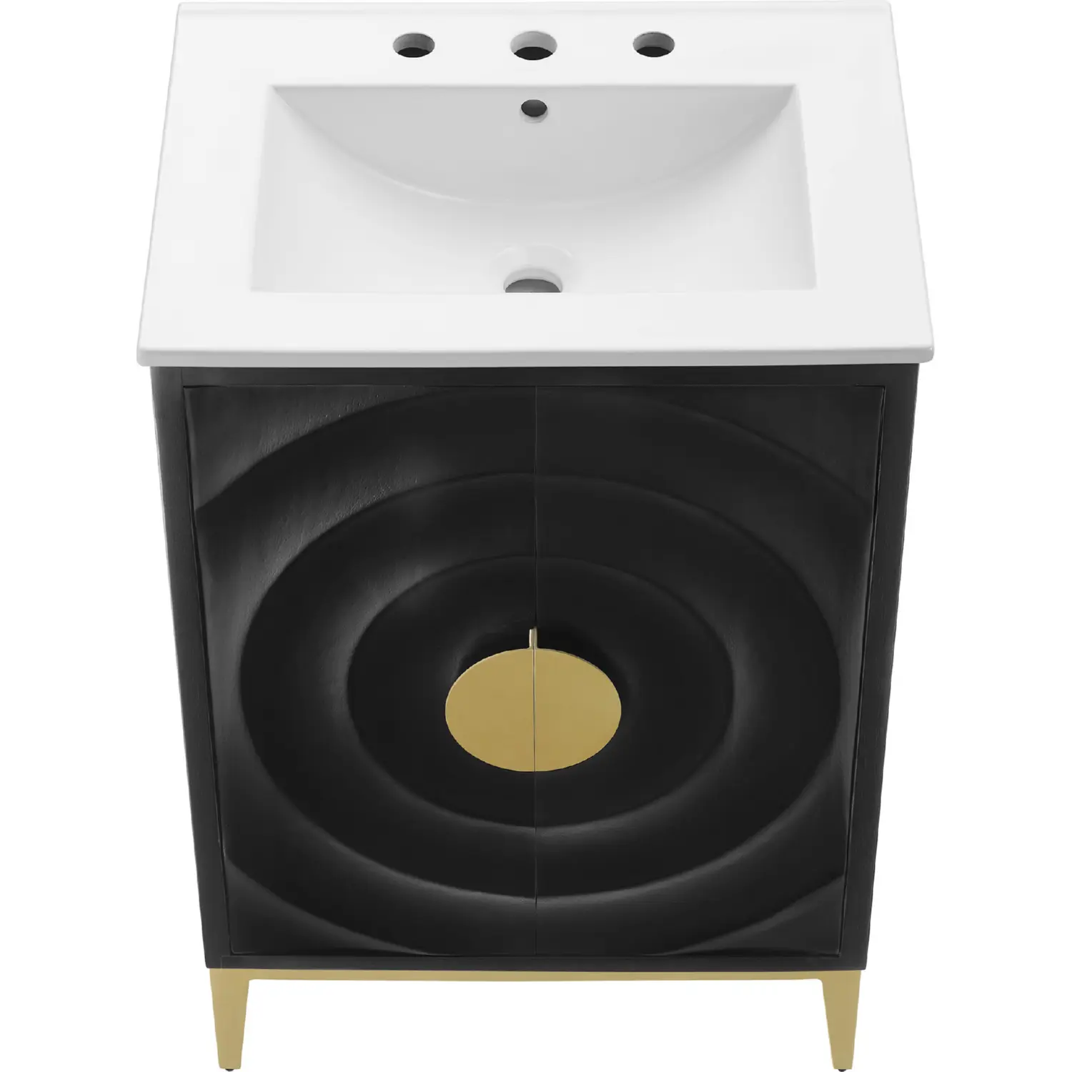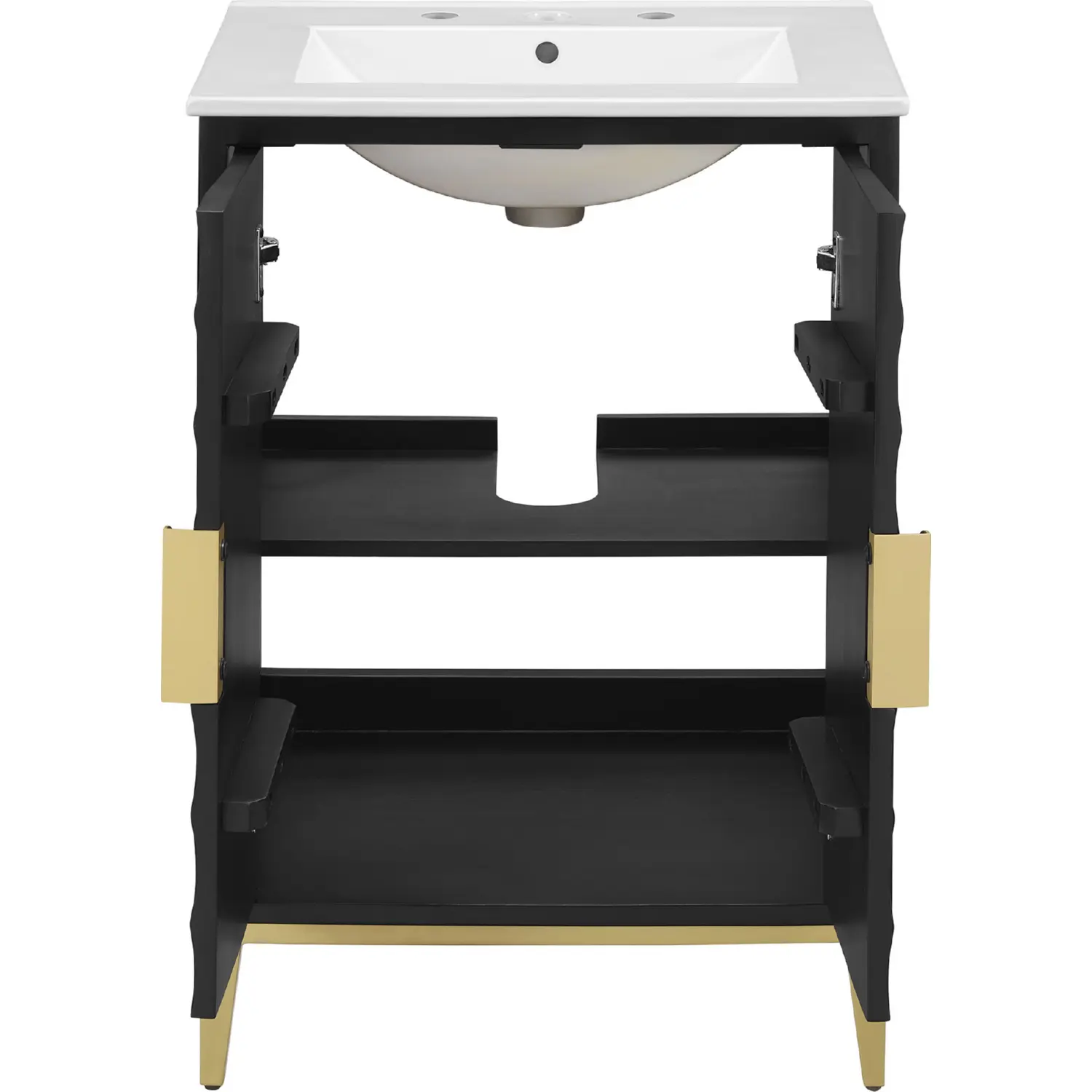 Modway EEI-7159-WHI-BLK Beau 24" Bathroom Vanity Black Wood Brass White Ceramic Basin