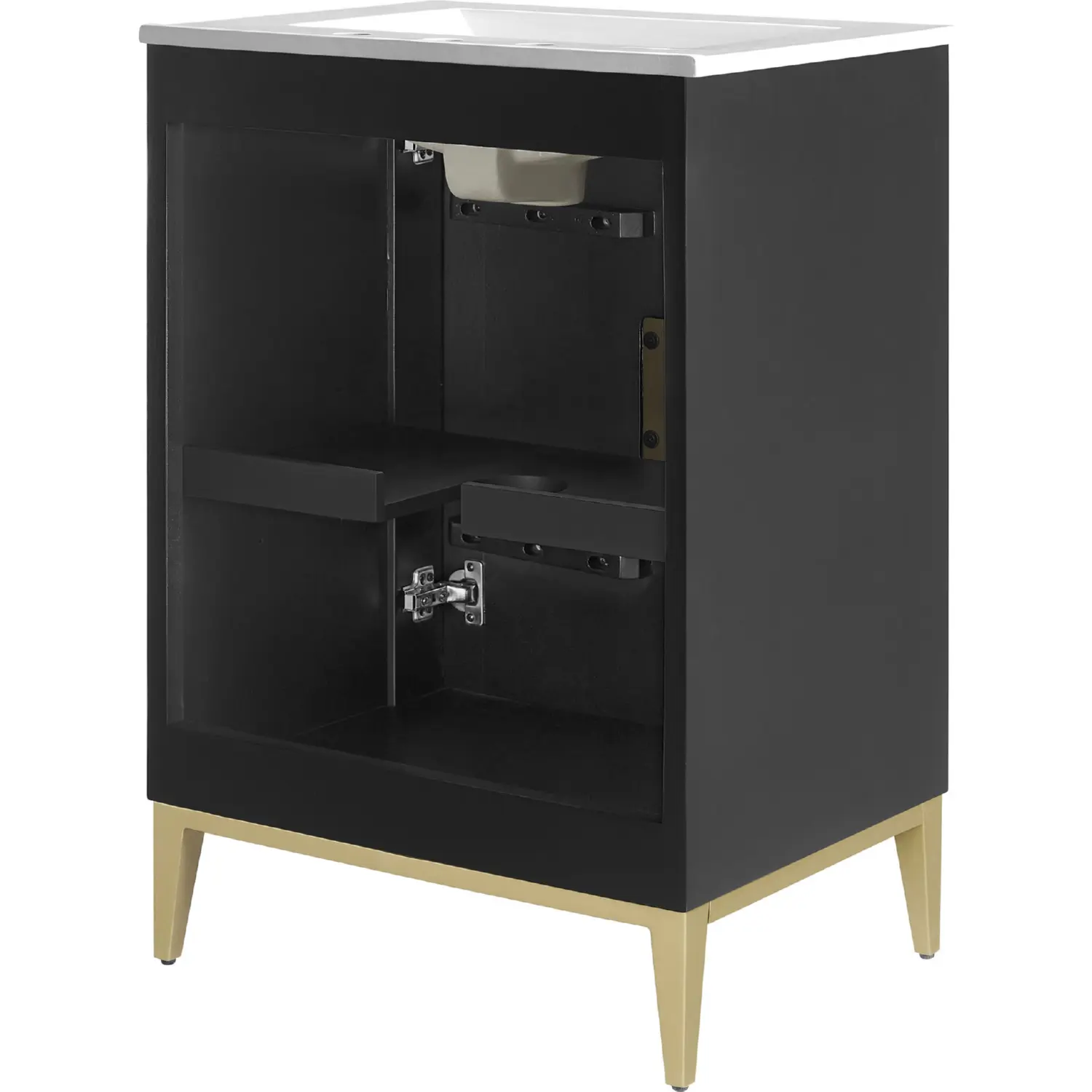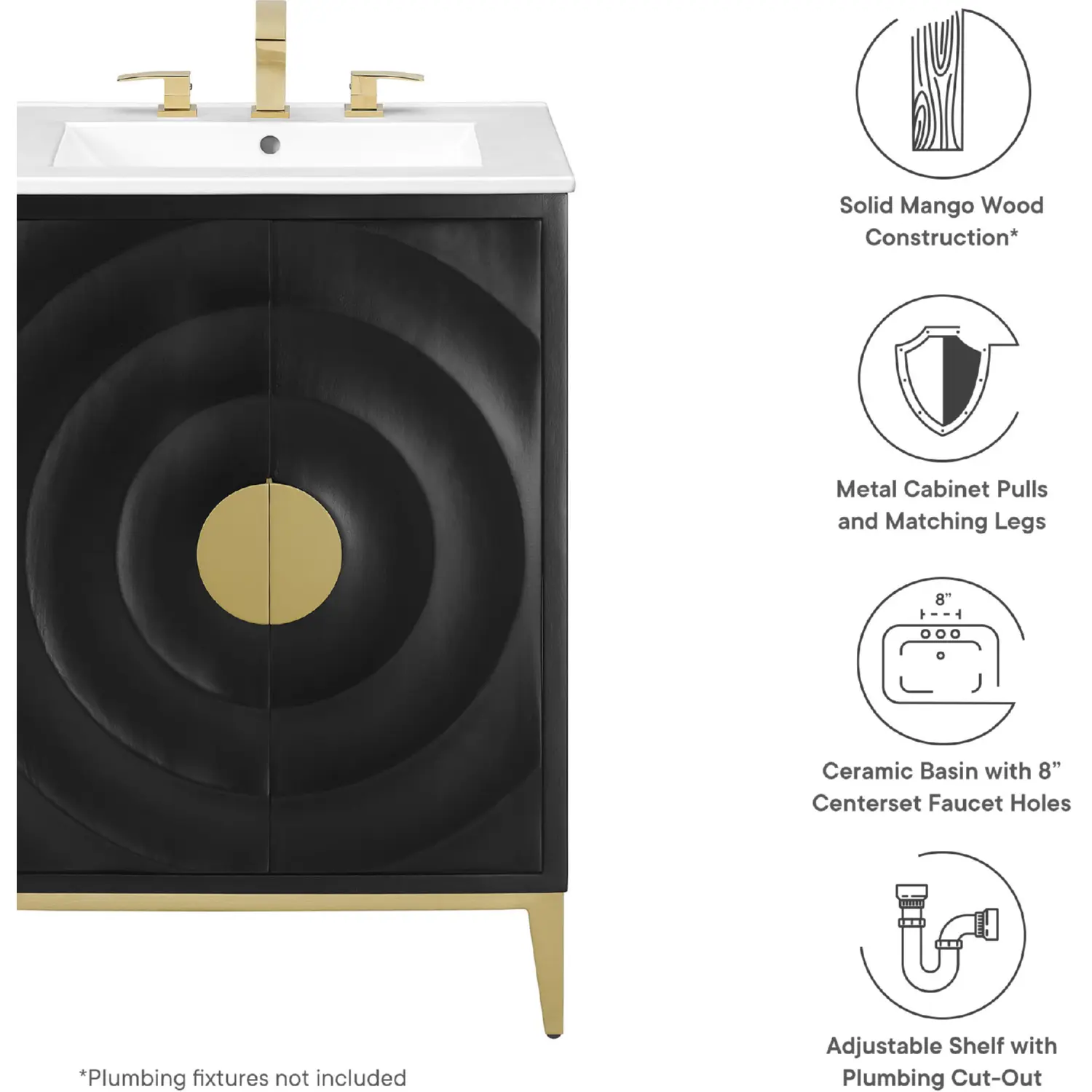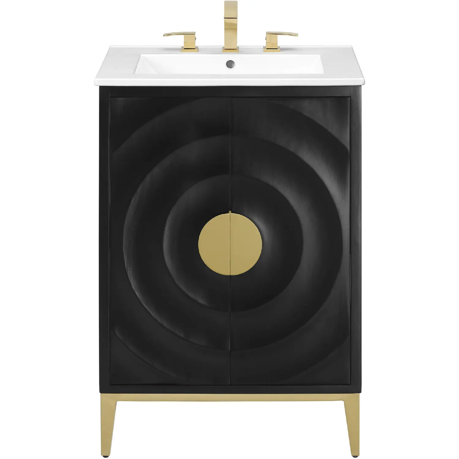 Modway Beau 24" Bathroom Vanity in Black Wood, Brass & White Ceramic Basin