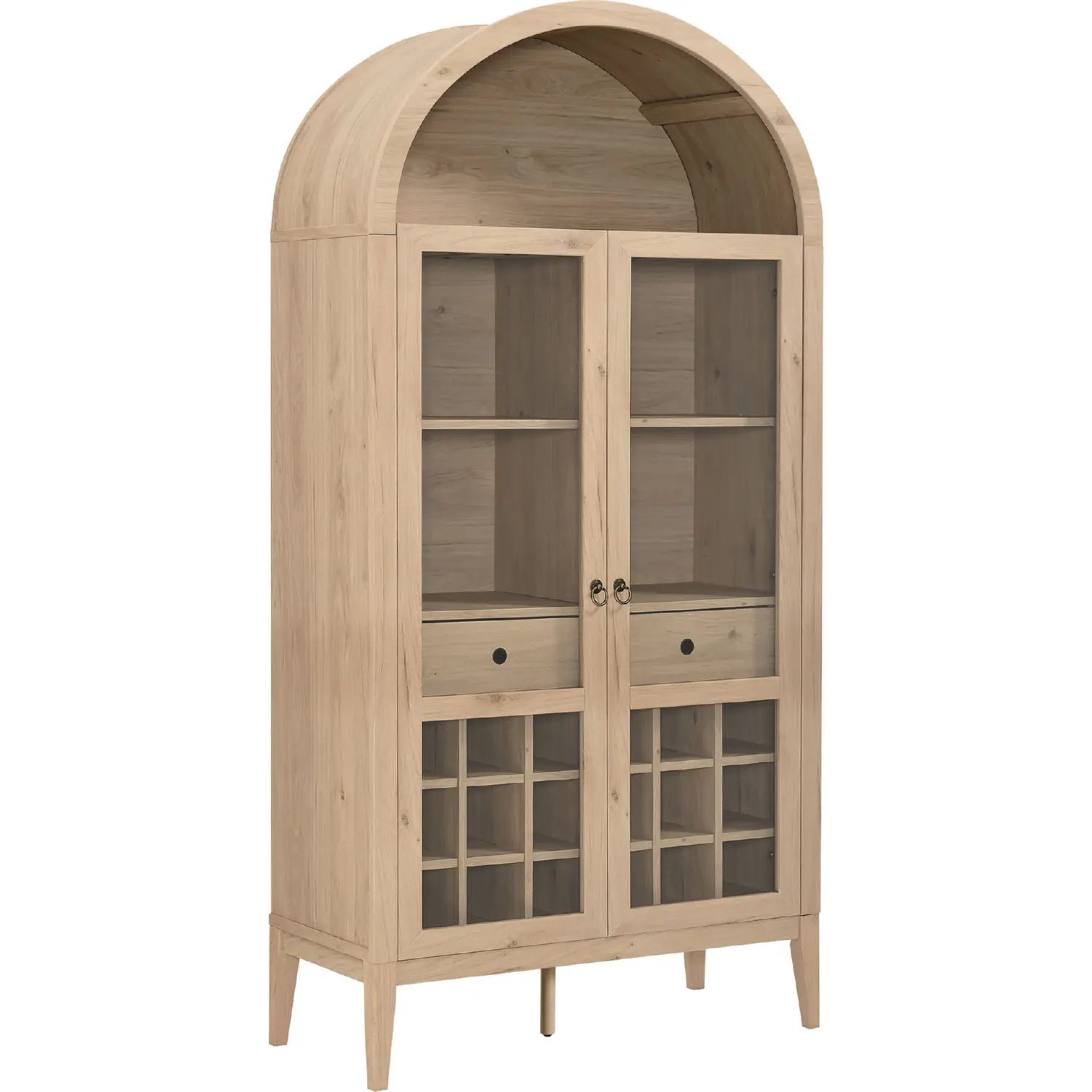 Modway Nolan Arched Bar Cabinet in Light Oak Finish & Tempered Glass