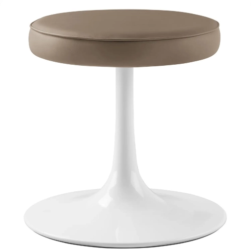 Modway Lippa Round Stool in Mushroom Brown Vegan Leather & White Metal