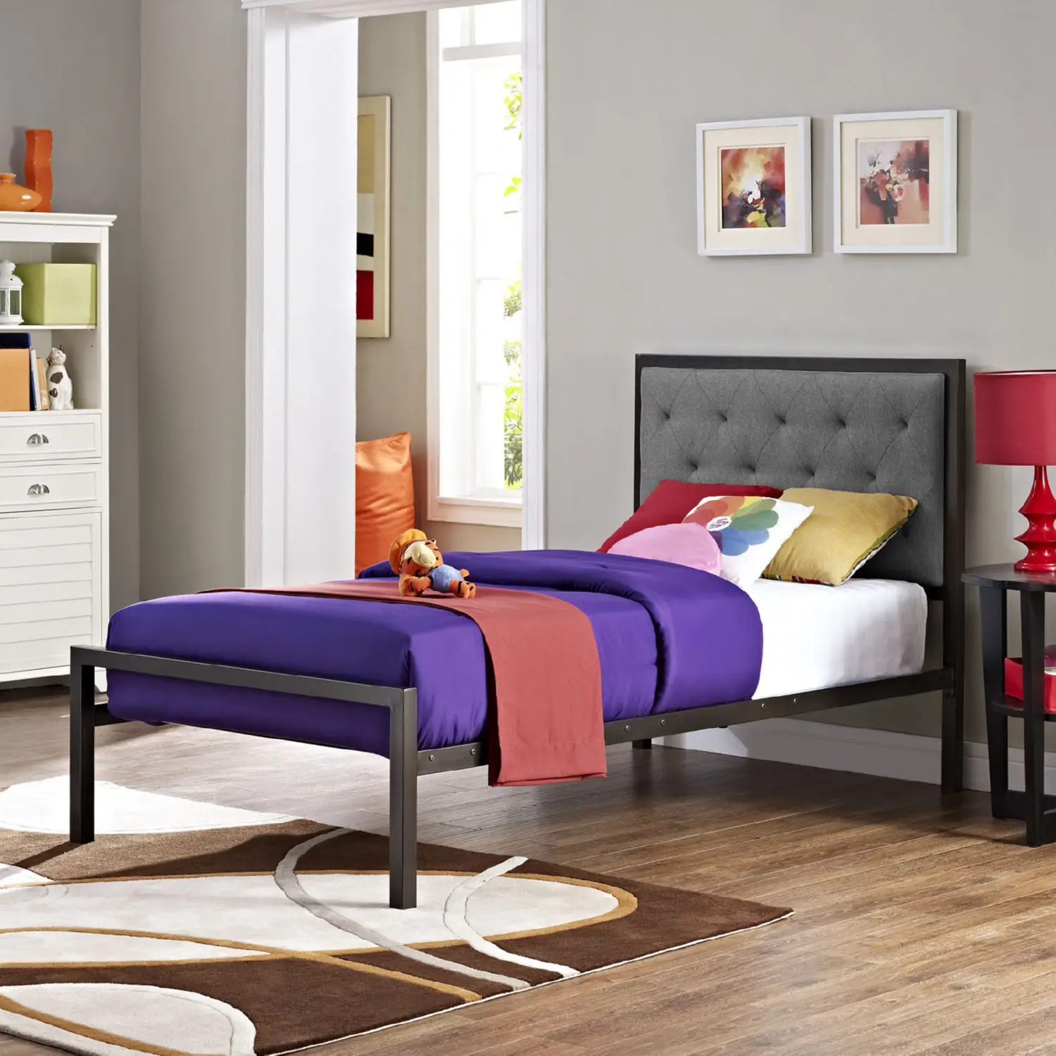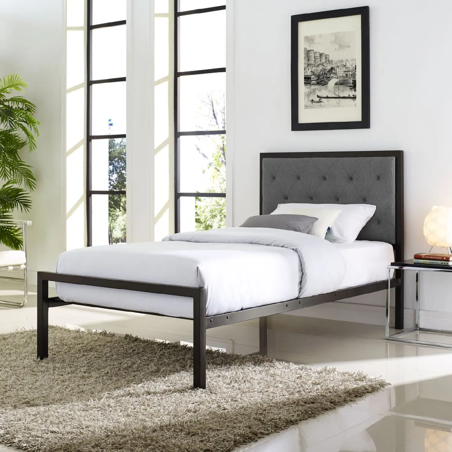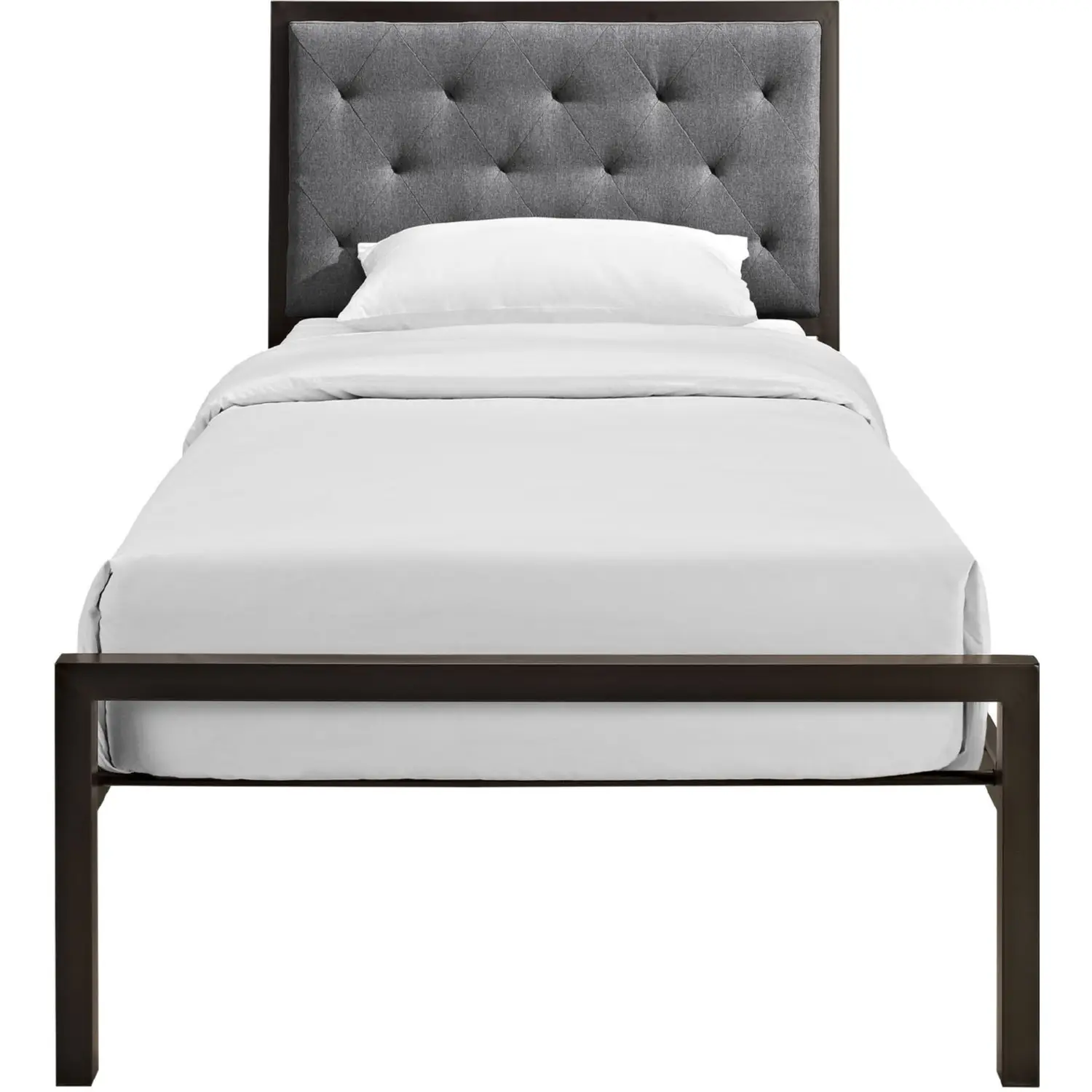 Modway Mia Twin Tufted Brown Gray Fabric Platform Bed