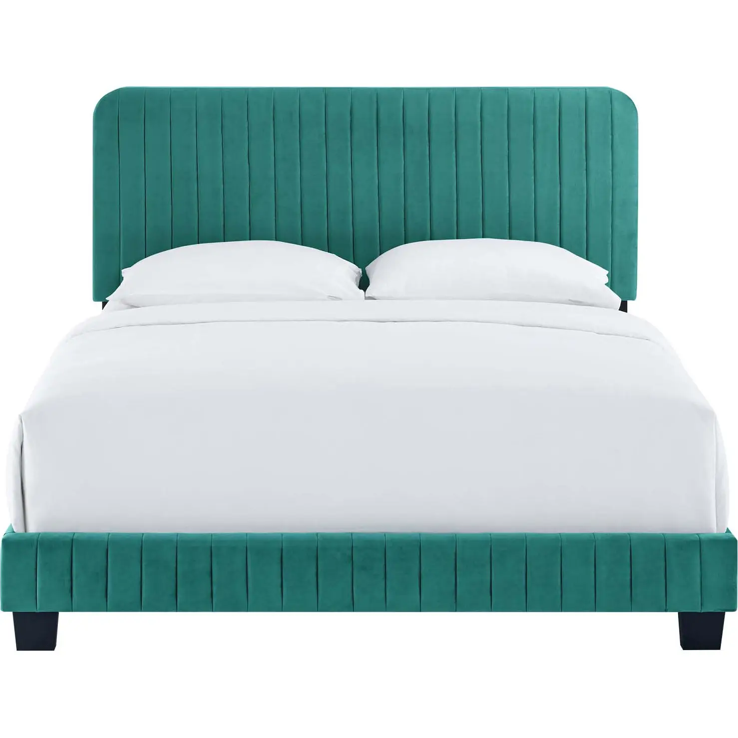 Modway Celine Twin Platform Bed in Channel Tufted Teal Performance Velvet