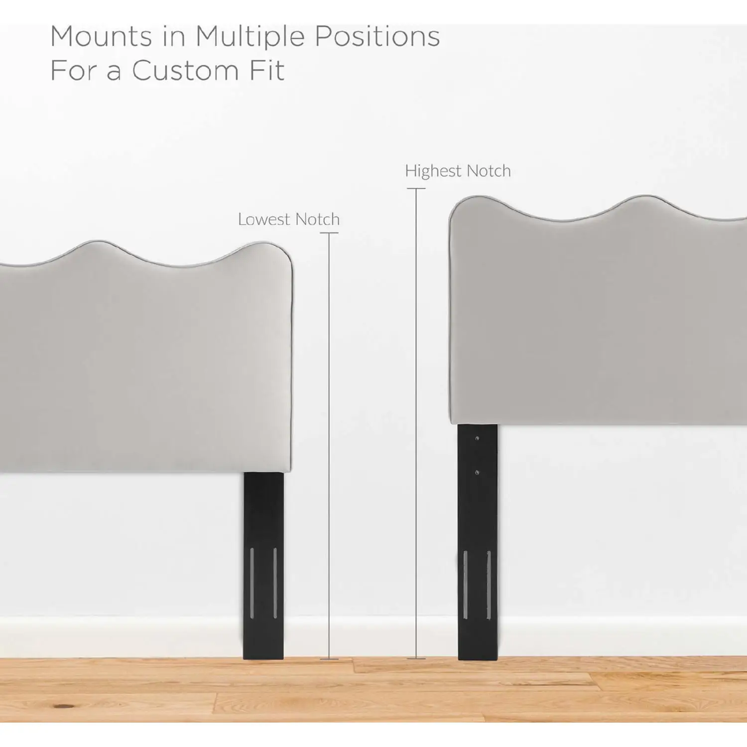 Modway Athena King or CA King Scalloped Headboard in Light Gray Performance Velvet