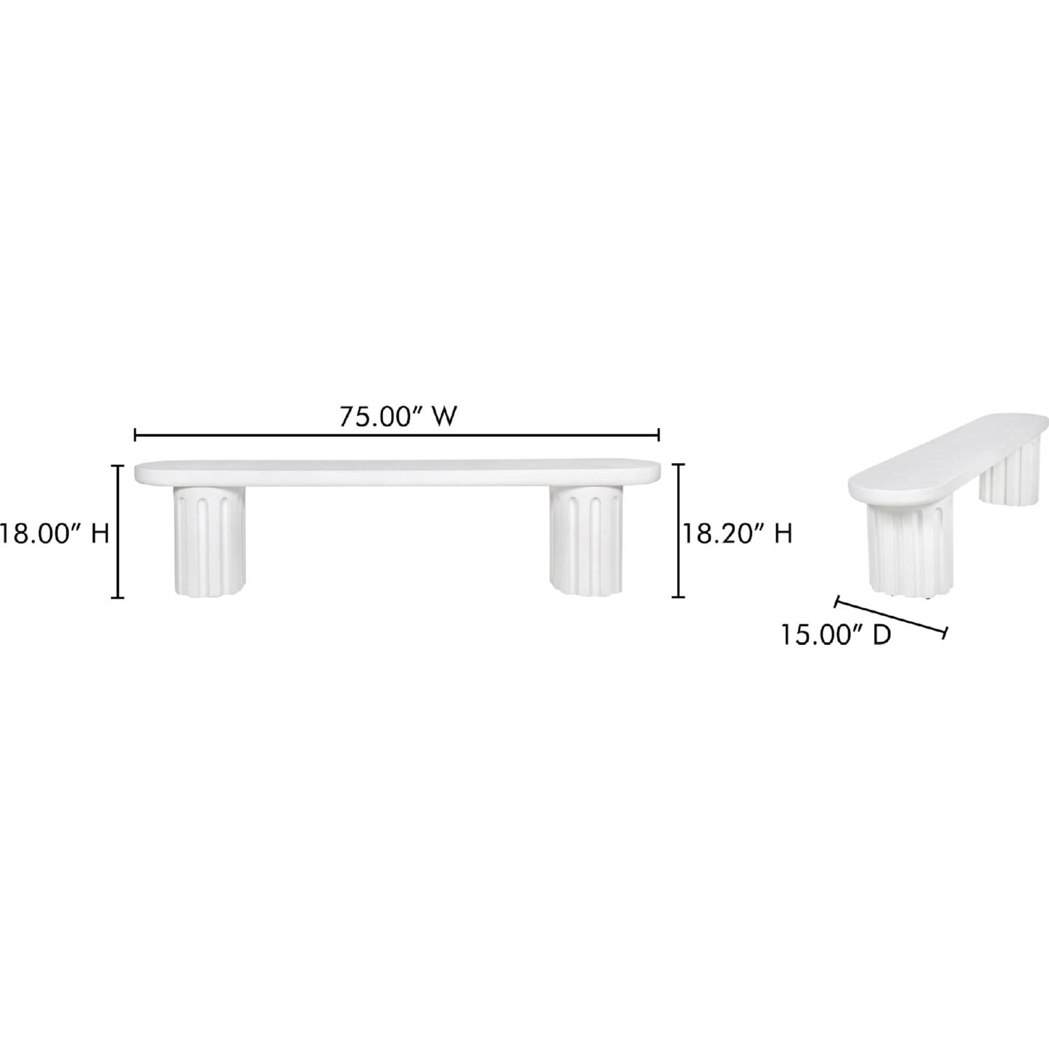 Moe's Eris Outdoor Dining Bench in White Fiberglass Reinforced Concrete