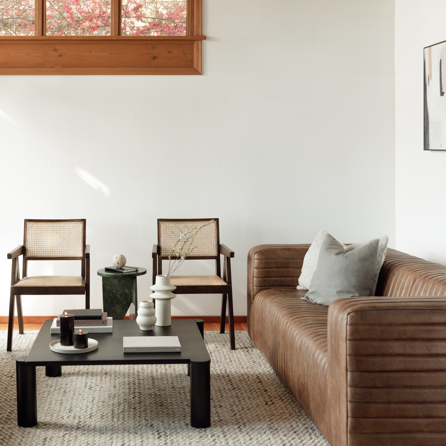 Moe's PK-1009-20 Castle Sofa Brown Top Grain Leather Solid Wood Frame