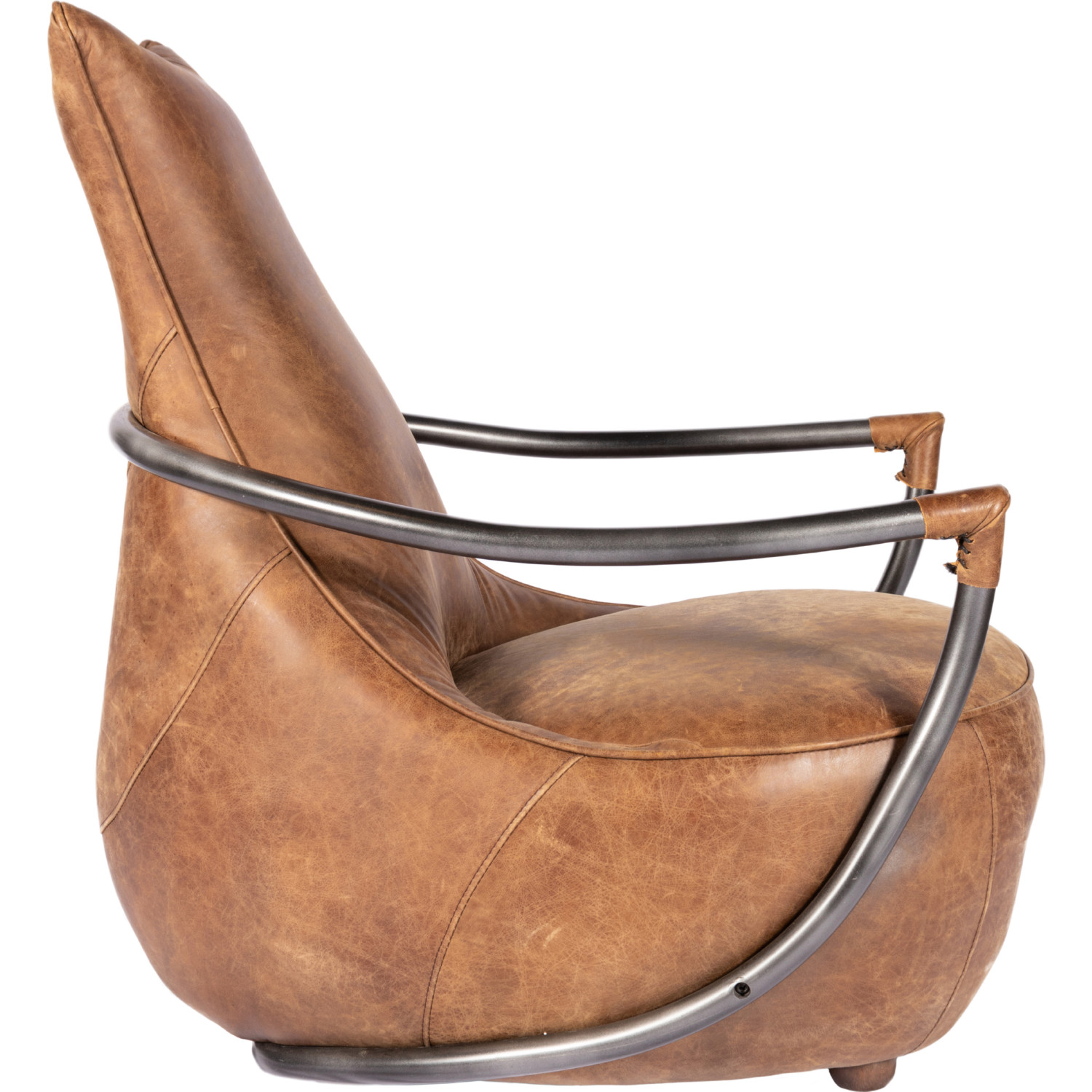 Moe's Carlisle Club Chair in Light Brown Distressed Top Grain Leather on Metal Frame