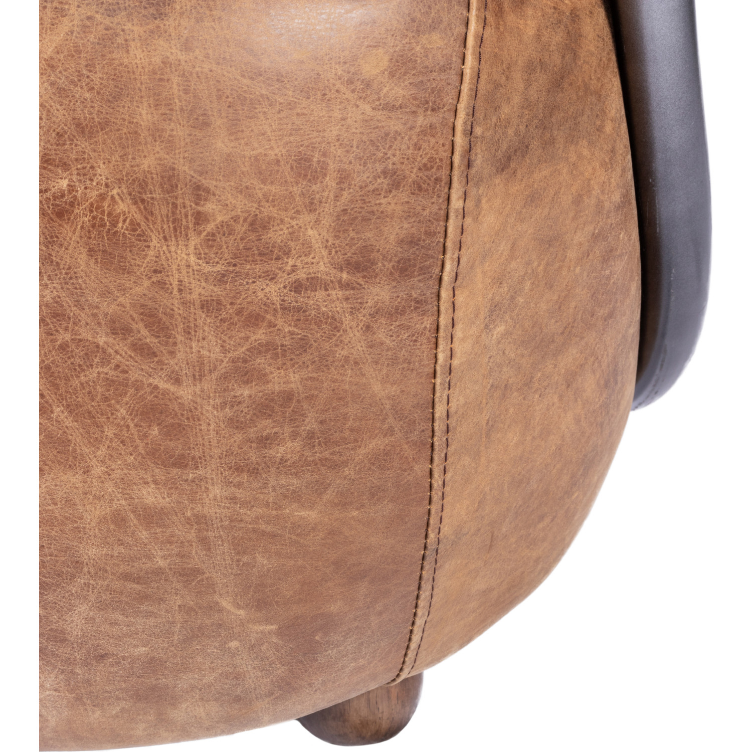 • Distressed top grain leather, fireproof foam, metal frame