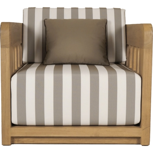 Moe's TA-1011-21 Adelaide Outdoor Accent Chair Teak Brown White Stripe Olefin Fabric