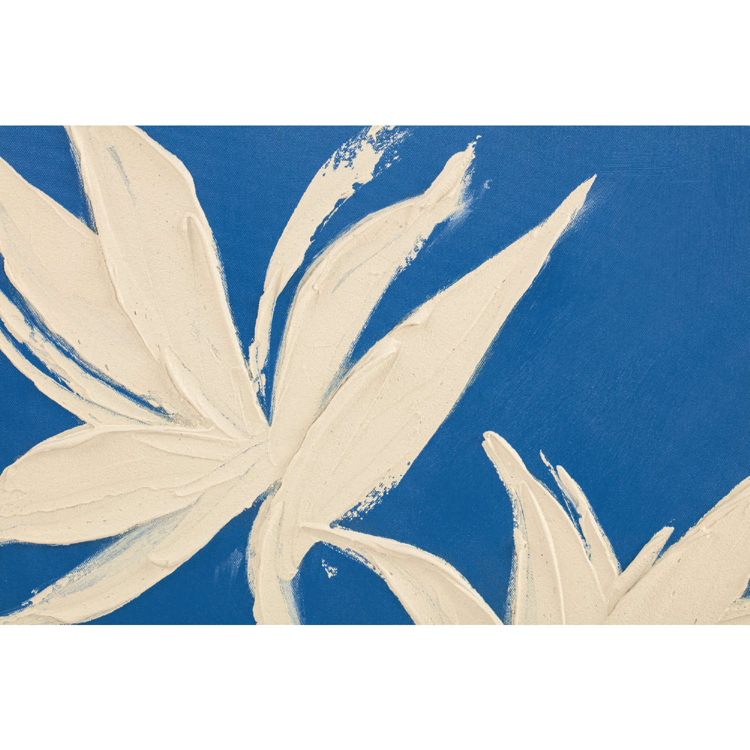 • Textured paint contrasted w/ solid rich blue background to give an inverse silhouette of a floral design