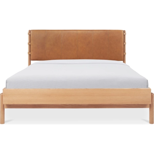 Moe's Colby King Bed in Camel Brown Top Grain Leather & Oak Wood