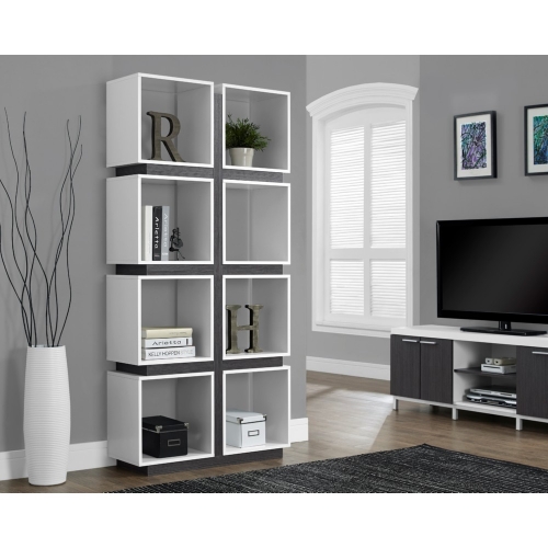 Monarch Specialties White & Grey 71" H 8 Cube Bookcase
