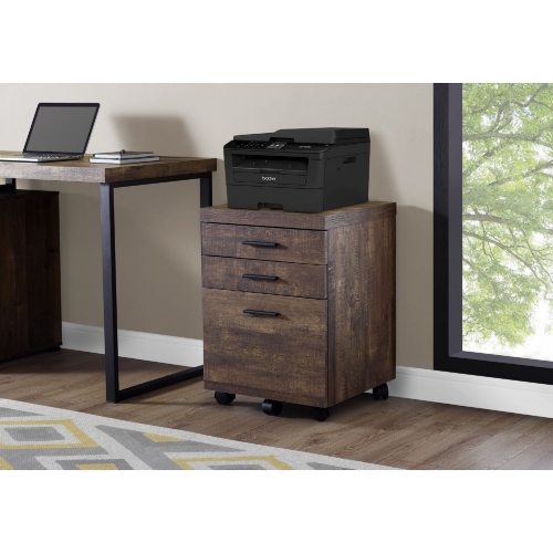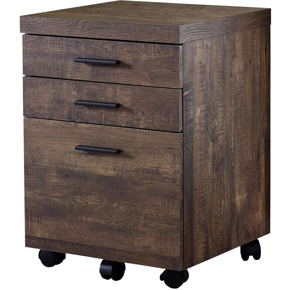 Monarch Specialties Filing Cabinet with 3 Drawer in Brown Wood Grain on Castors