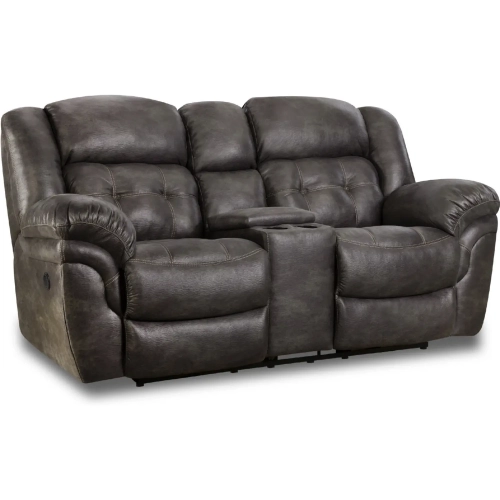 Motion Ease 129-29-14 Haven Power Reclining Console Loveseat Charcoal Grey Leather Look Fabric