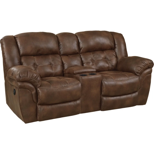 Motion Ease 129-29-21 Haven Power Reclining Console Loveseat Espresso Brown Leather Look Fabric