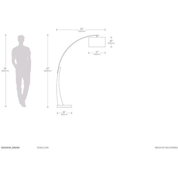 Nova 2110003A Plimpton 72" 1 Light Arc Floor Lamp Espresso Wood Brushed Nickel White Linen