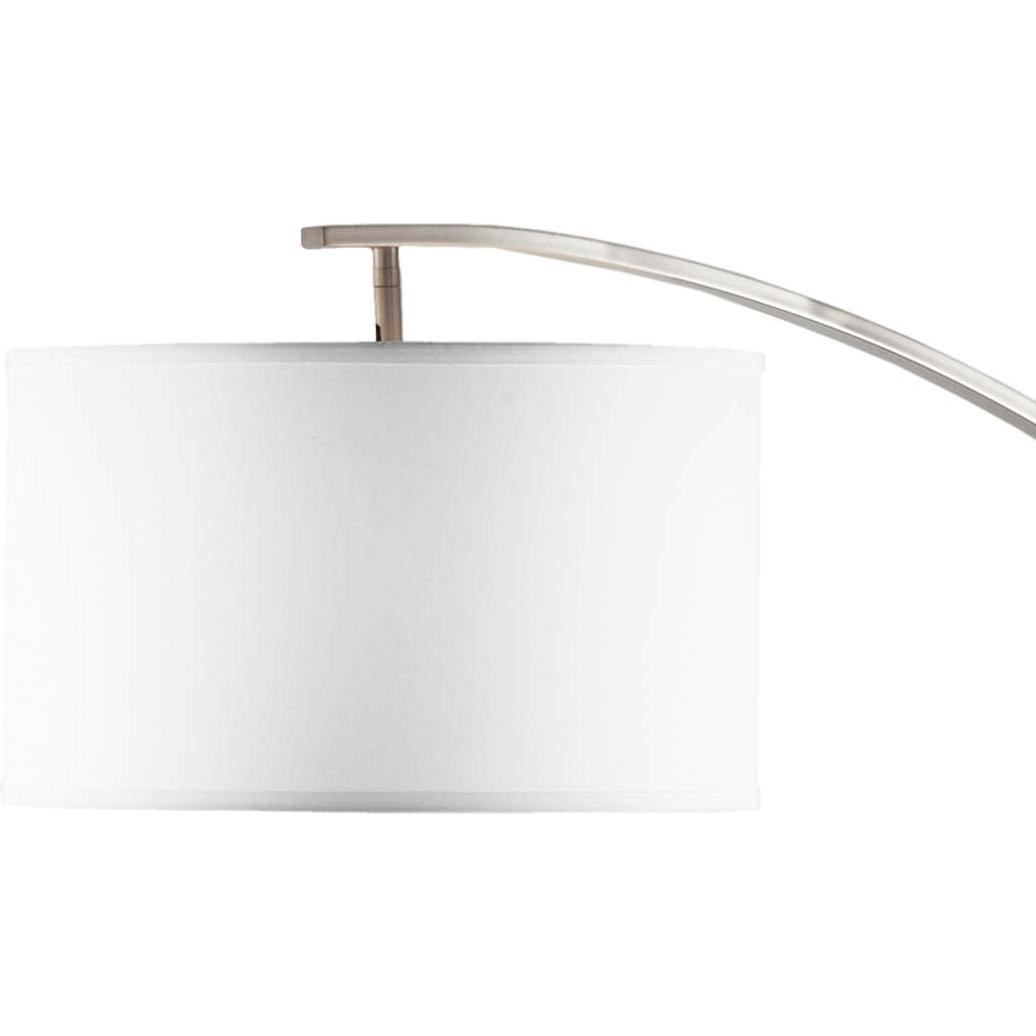 Nova Plimpton 72" 1 Light Arc Floor Lamp in Espresso Wood, Brushed Nickel, & White Linen