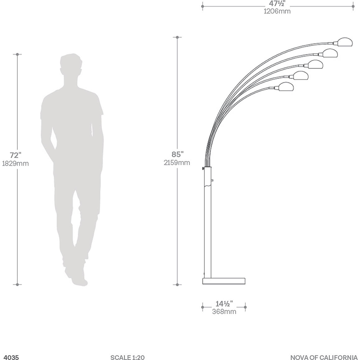 Nova 4035 Mushroom 5 Light Arc Floor Lamp Black Nickel Black Marble