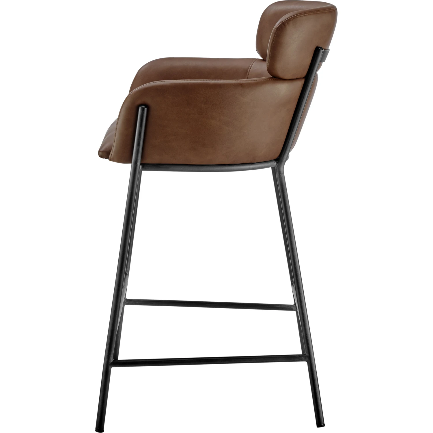 New Pacific Direct Finley Counter Stool in Tufted Vintage Cognac Leatherette & Black