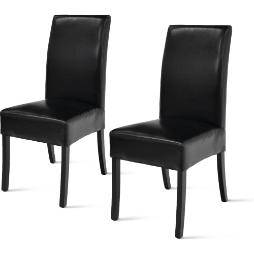 New Pacific Direct Valencia Dining Chair in Black Bi-Cast Leather on Black Finish Birch Legs (Set of 2)