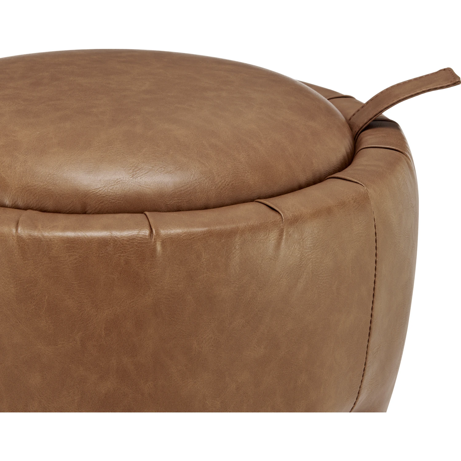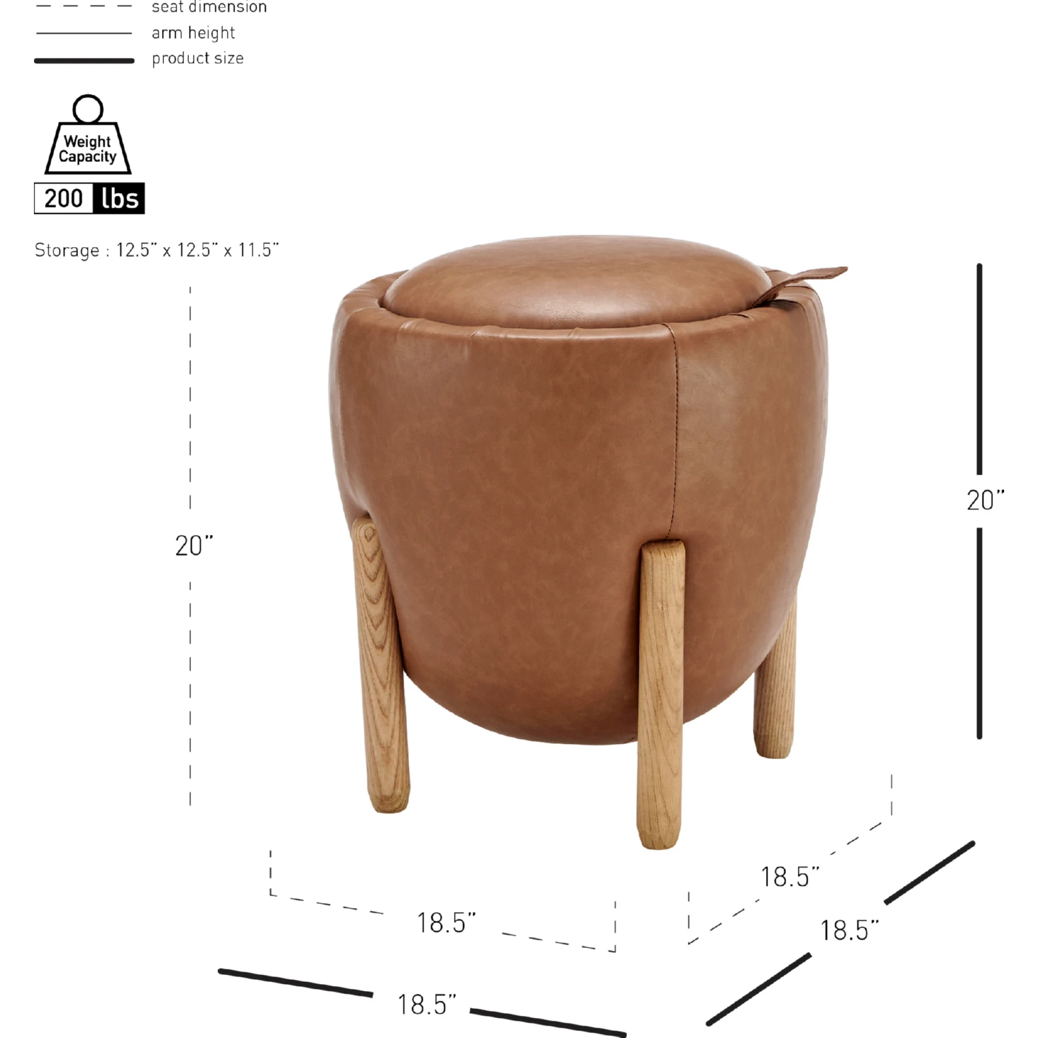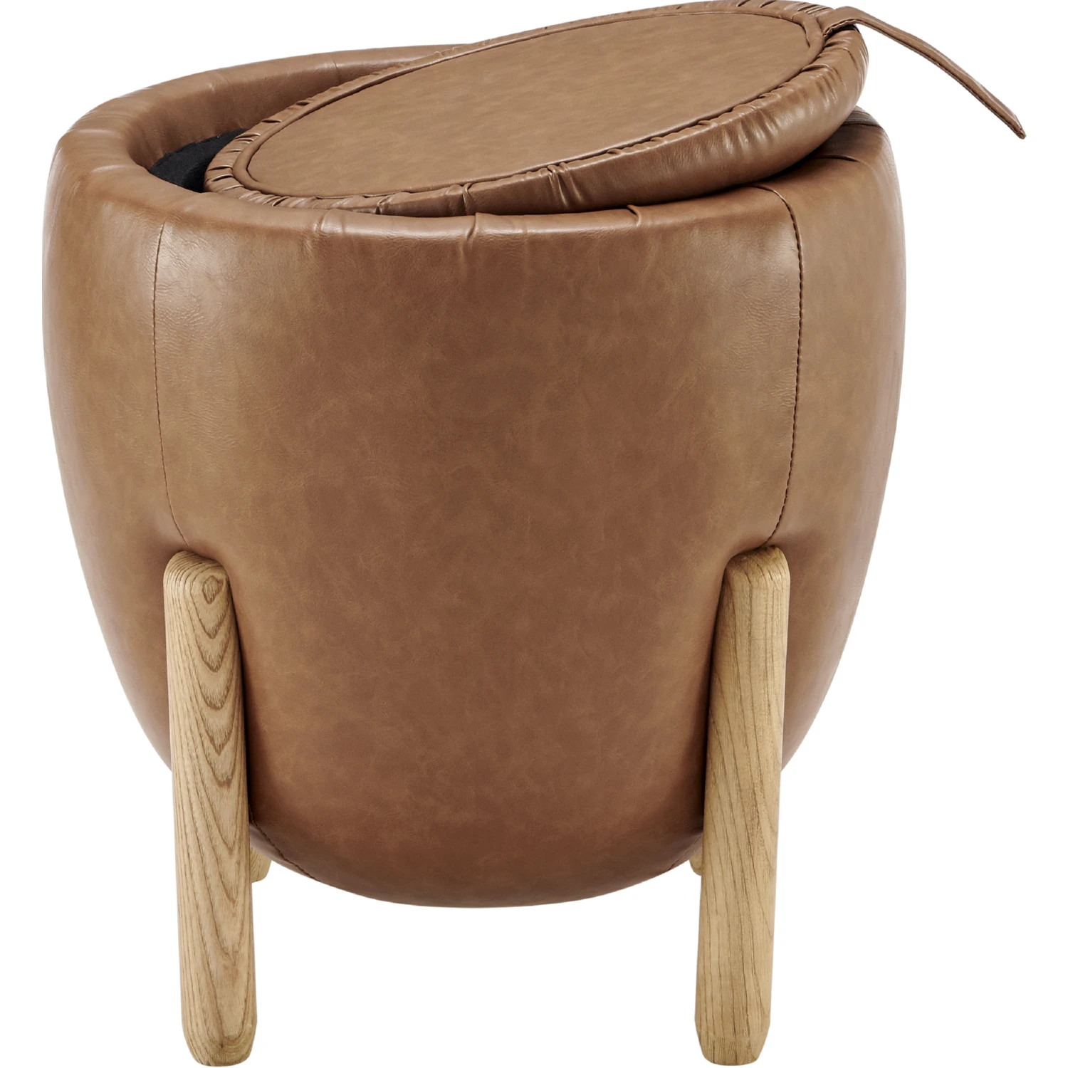 New Pacific Direct Murphy Storage Ottoman in Vintage Cider Brown Leatherette & Wood