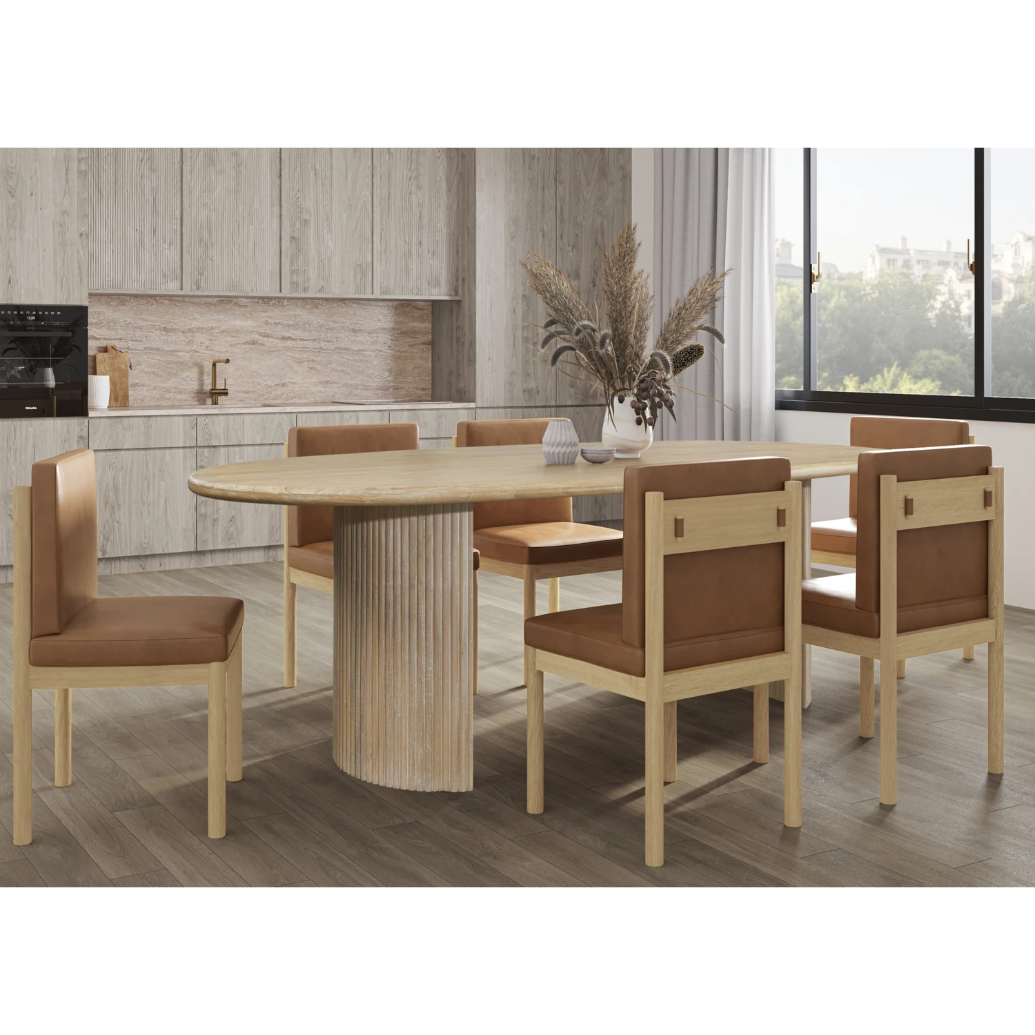 New Pacific Direct 8000081 Aniston 92.50" Oval Dining Table Natural White Wash Wood