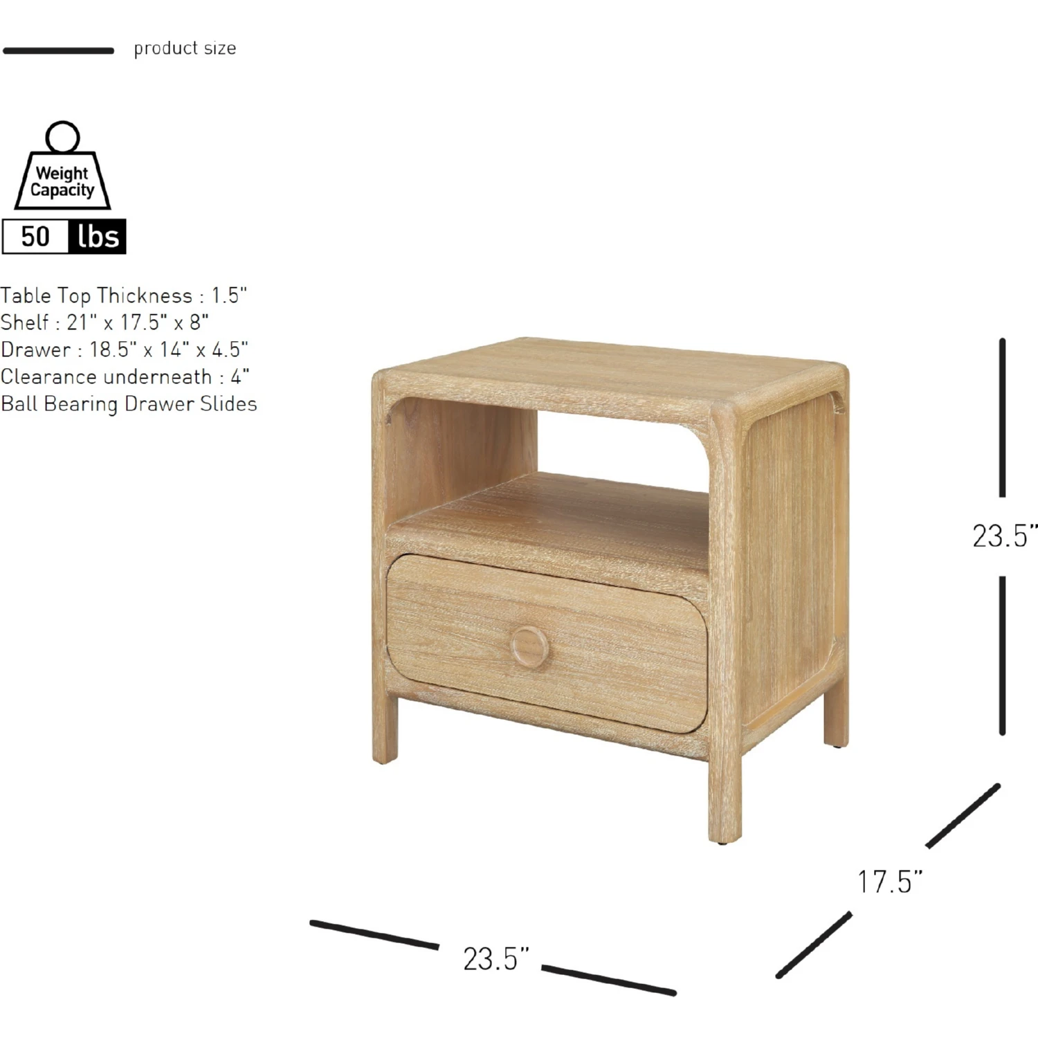 New Pacific Direct Hansville Nightstand Side Table in Natural White Wash Wood