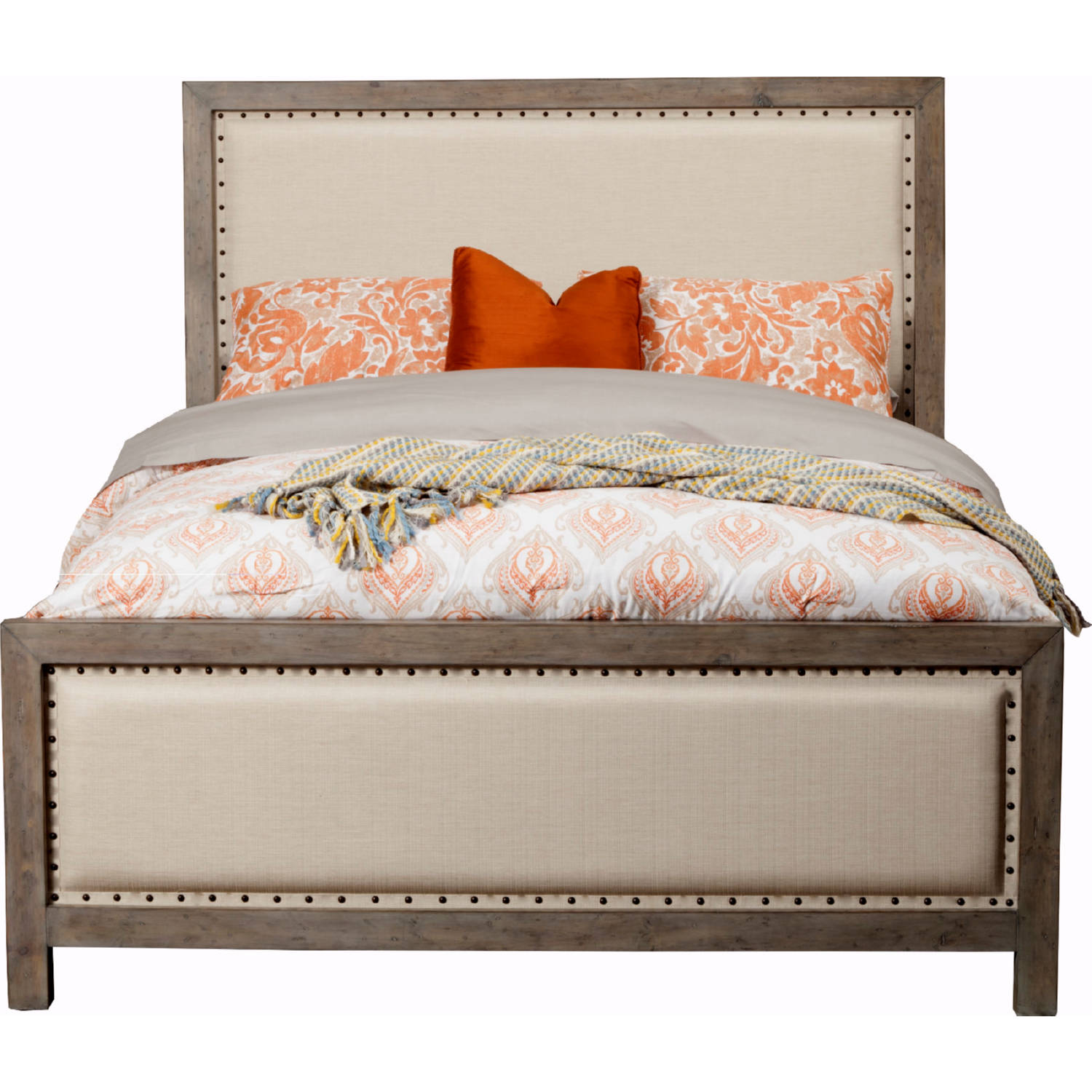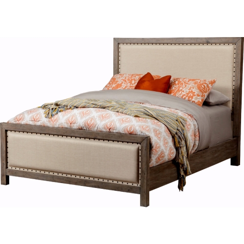 Origins Furniture Classic King Bed in Distressed Natural Grey Wood & Linen