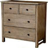 • Crafted w/ pine solids & veneers in light distressed natural grey finish