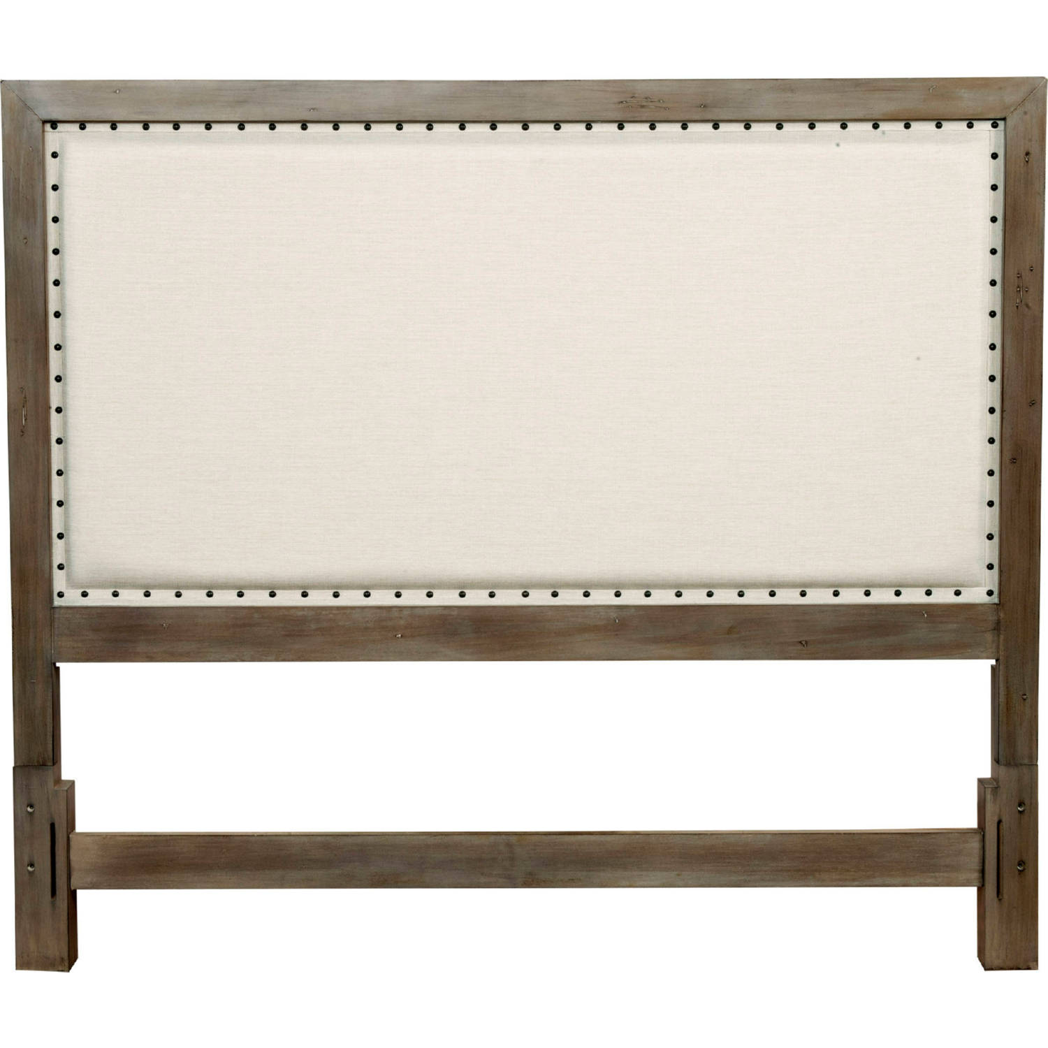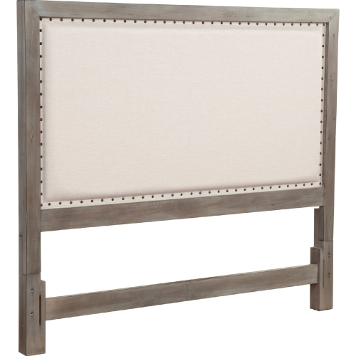 Origins Furniture Classic King Headboard in Distressed Natural Grey Wood & Linen