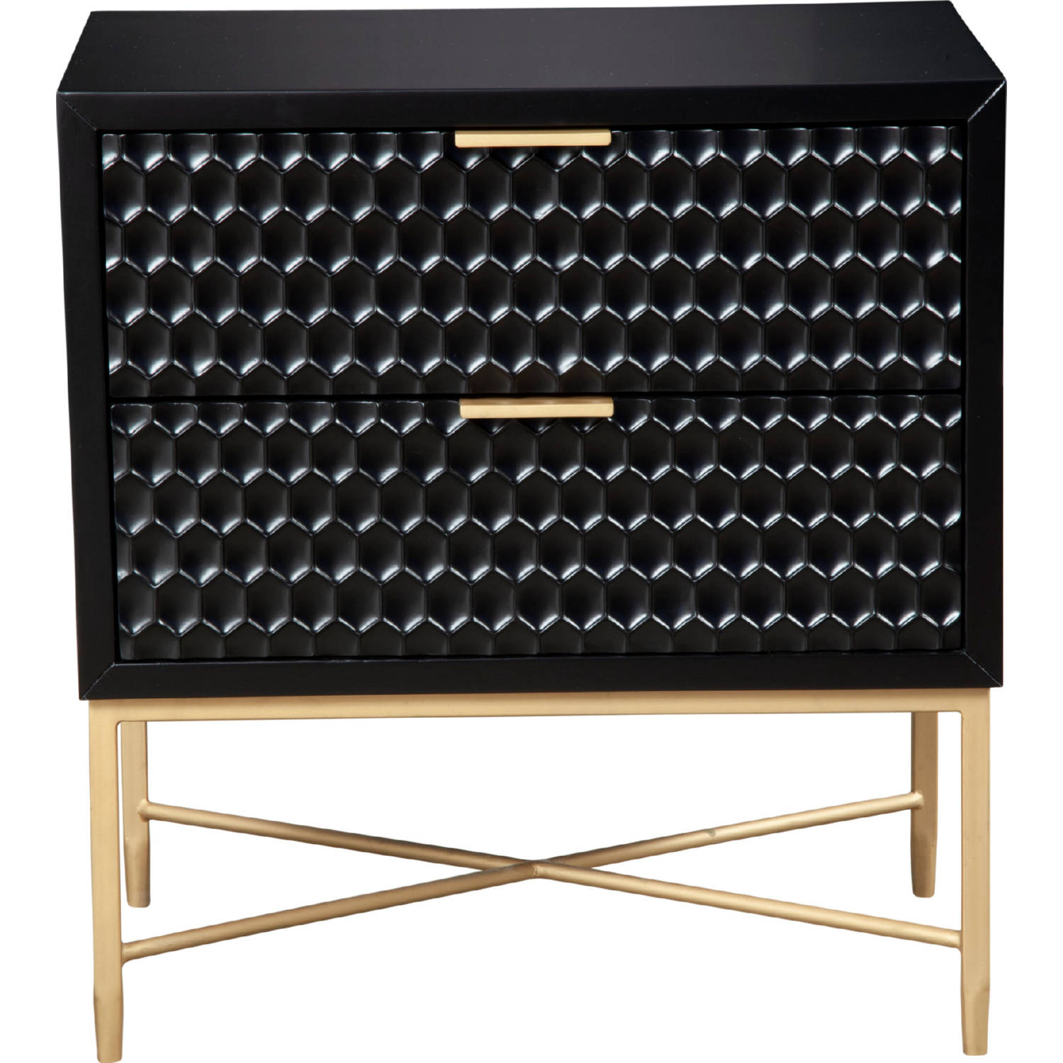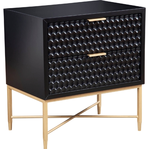 Origins Furniture Black Pearl 2 Drawer Nightstand in Textured Black Finish & Gold (Set of 2)
