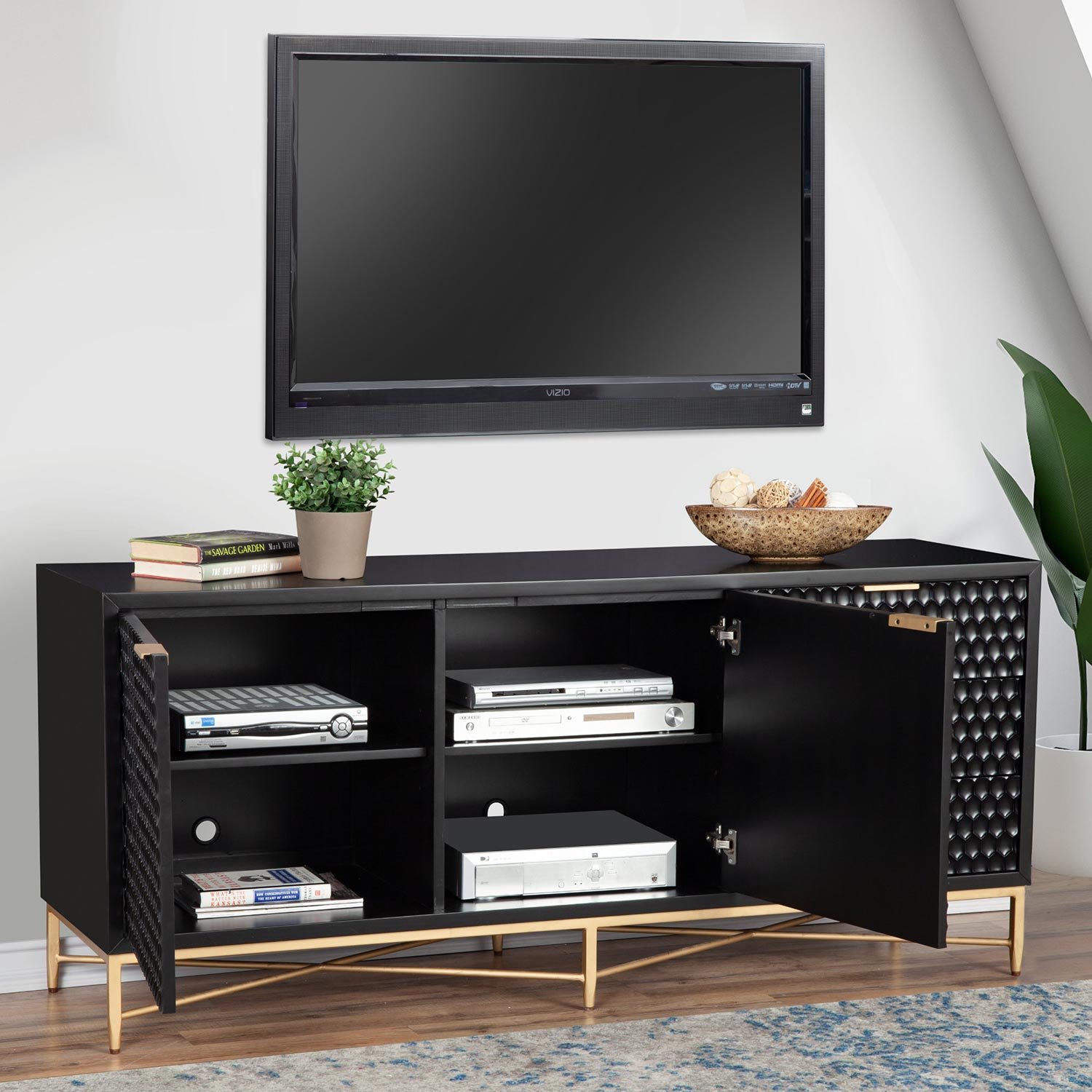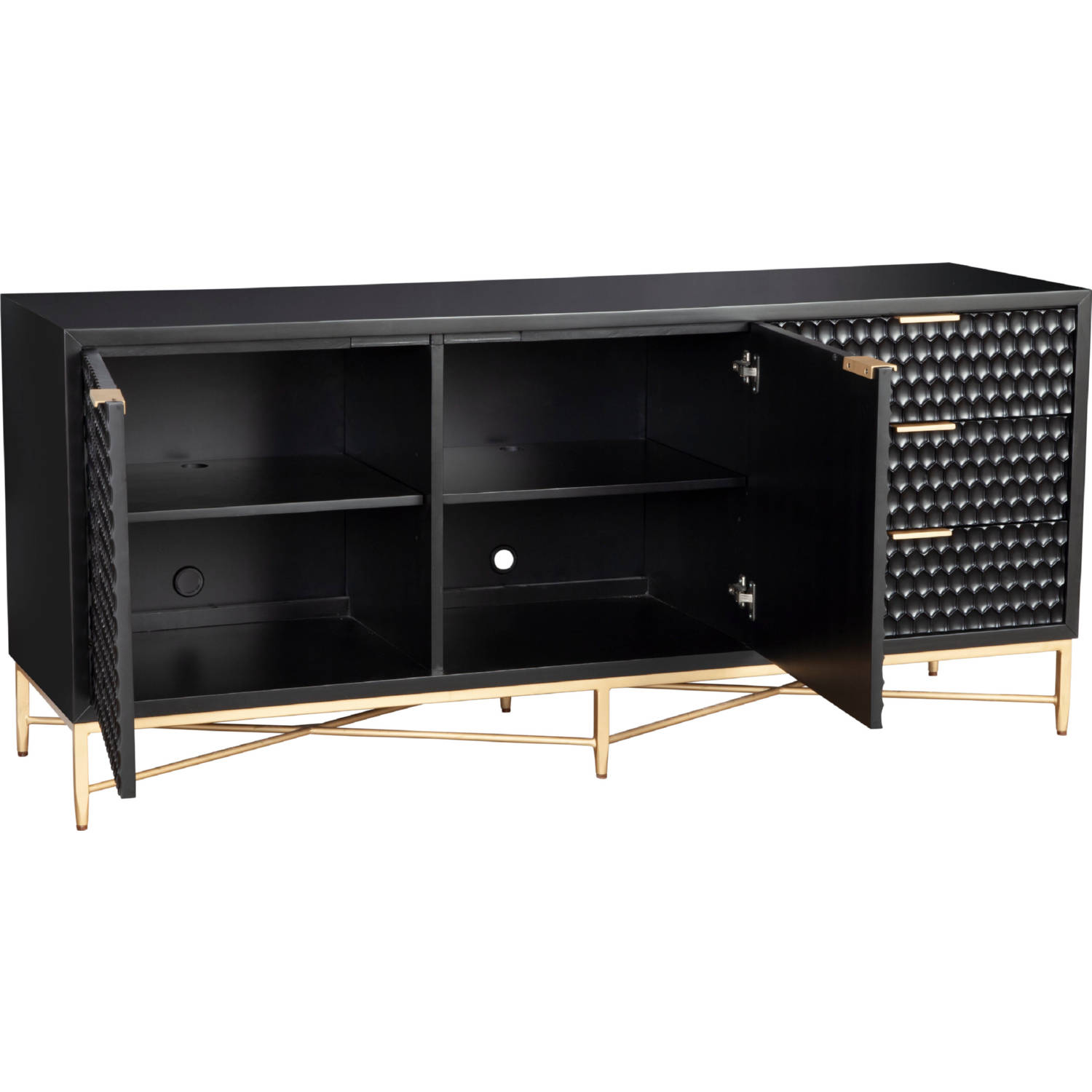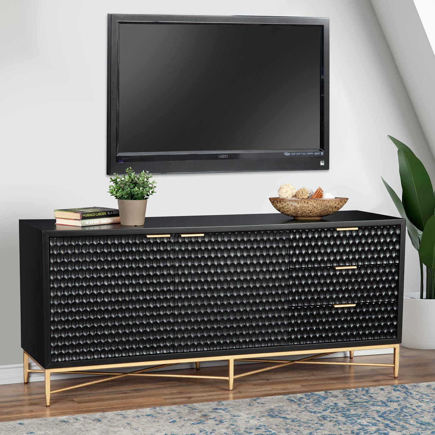 Origins Furniture Black Pearl 64" TV Stand Console in Black Wood & Gold
