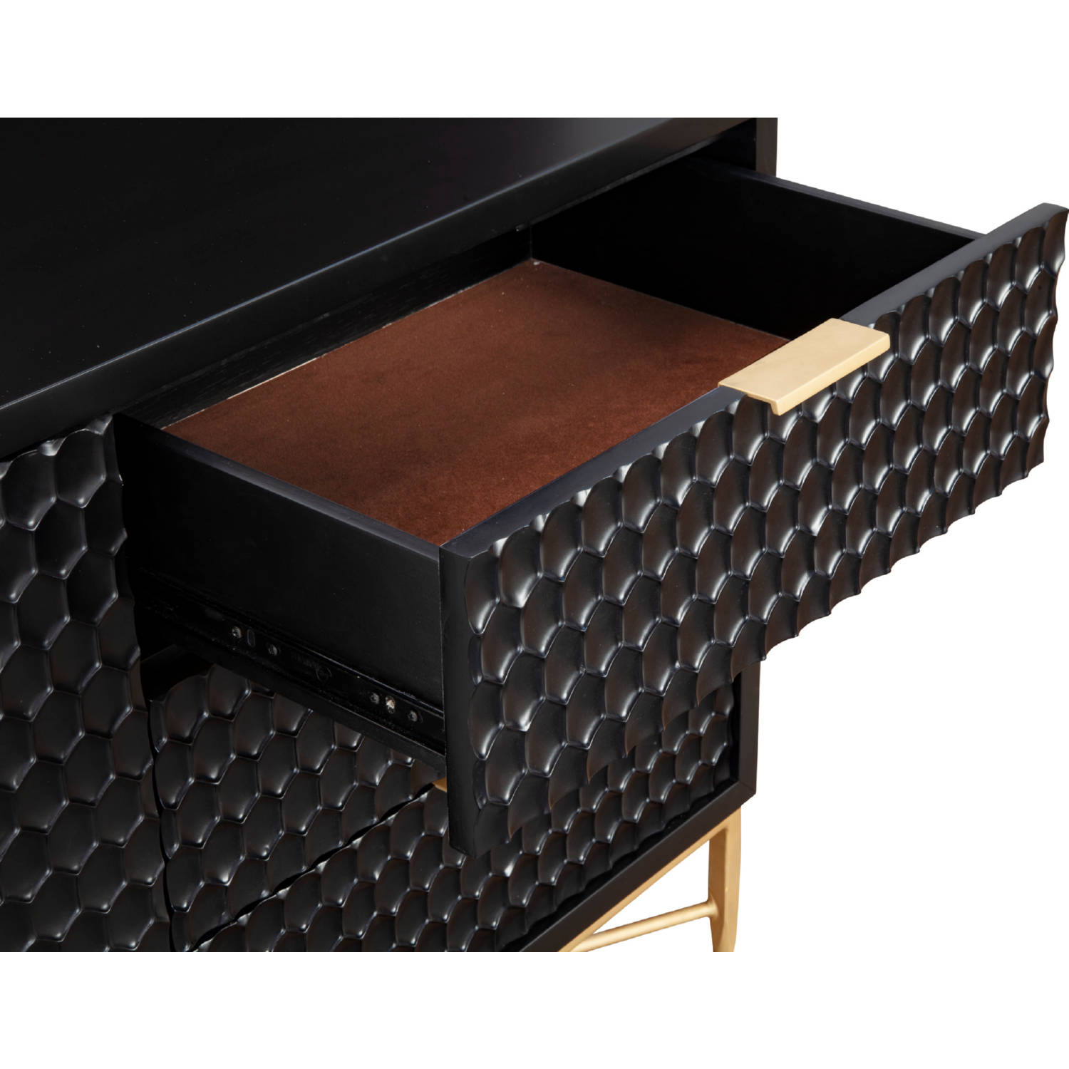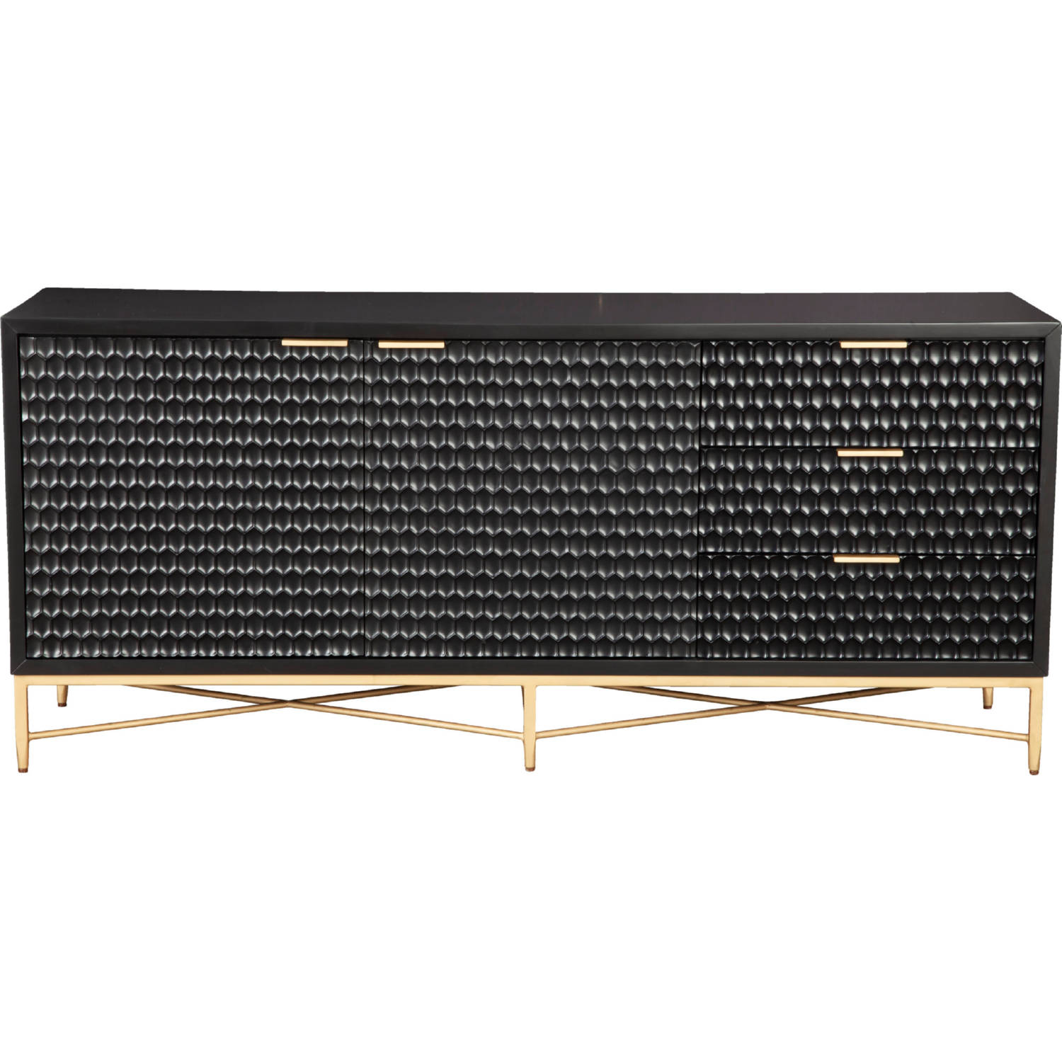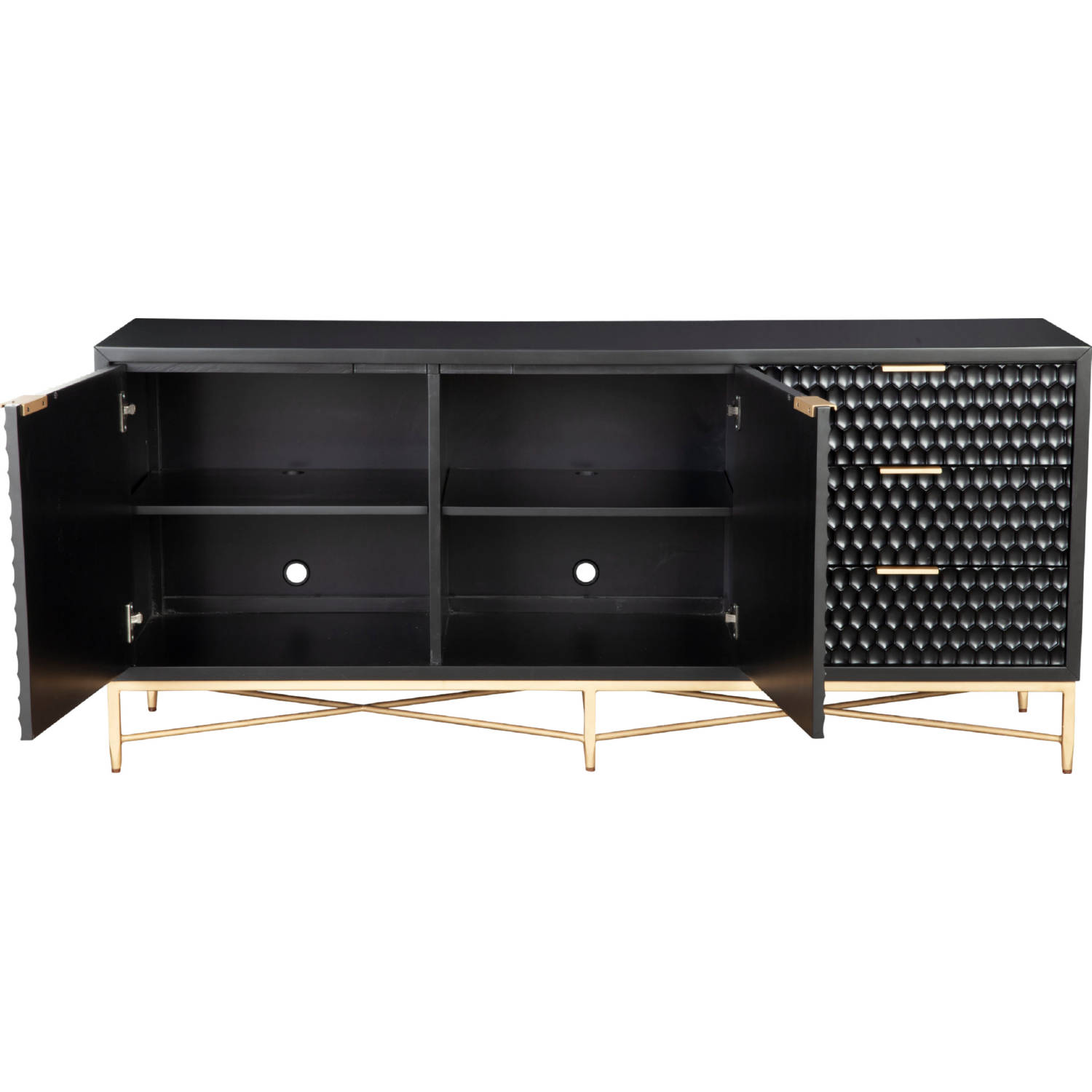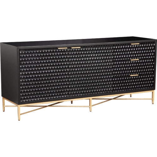 Origins Furniture Black Pearl 64" TV Stand Console in Black Wood & Gold
