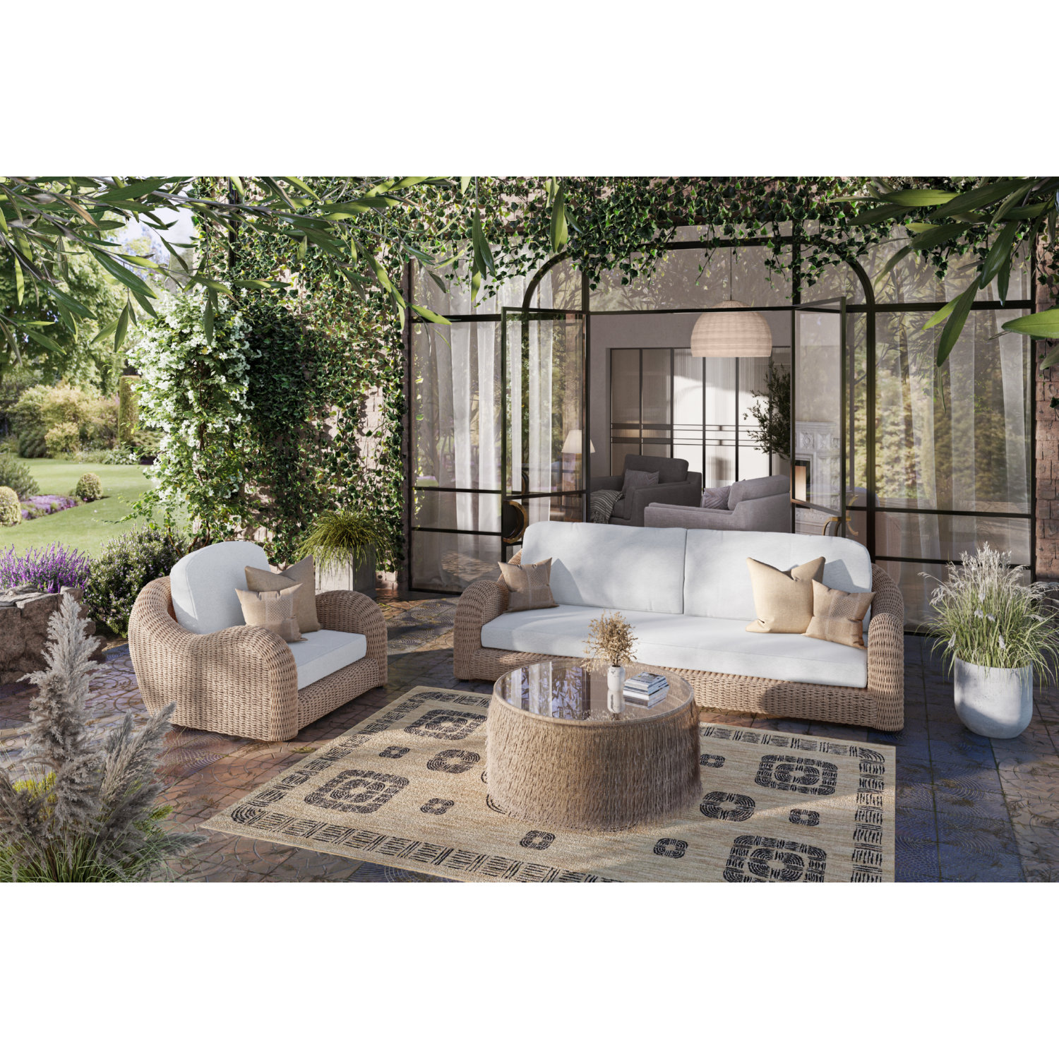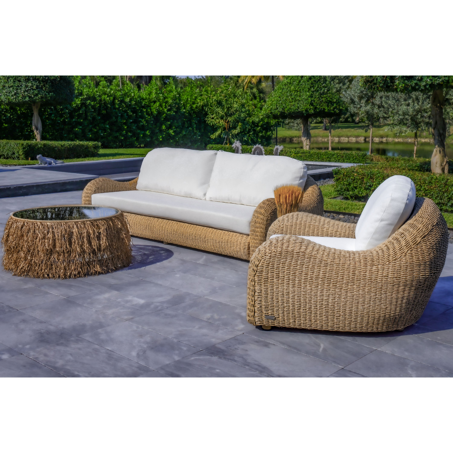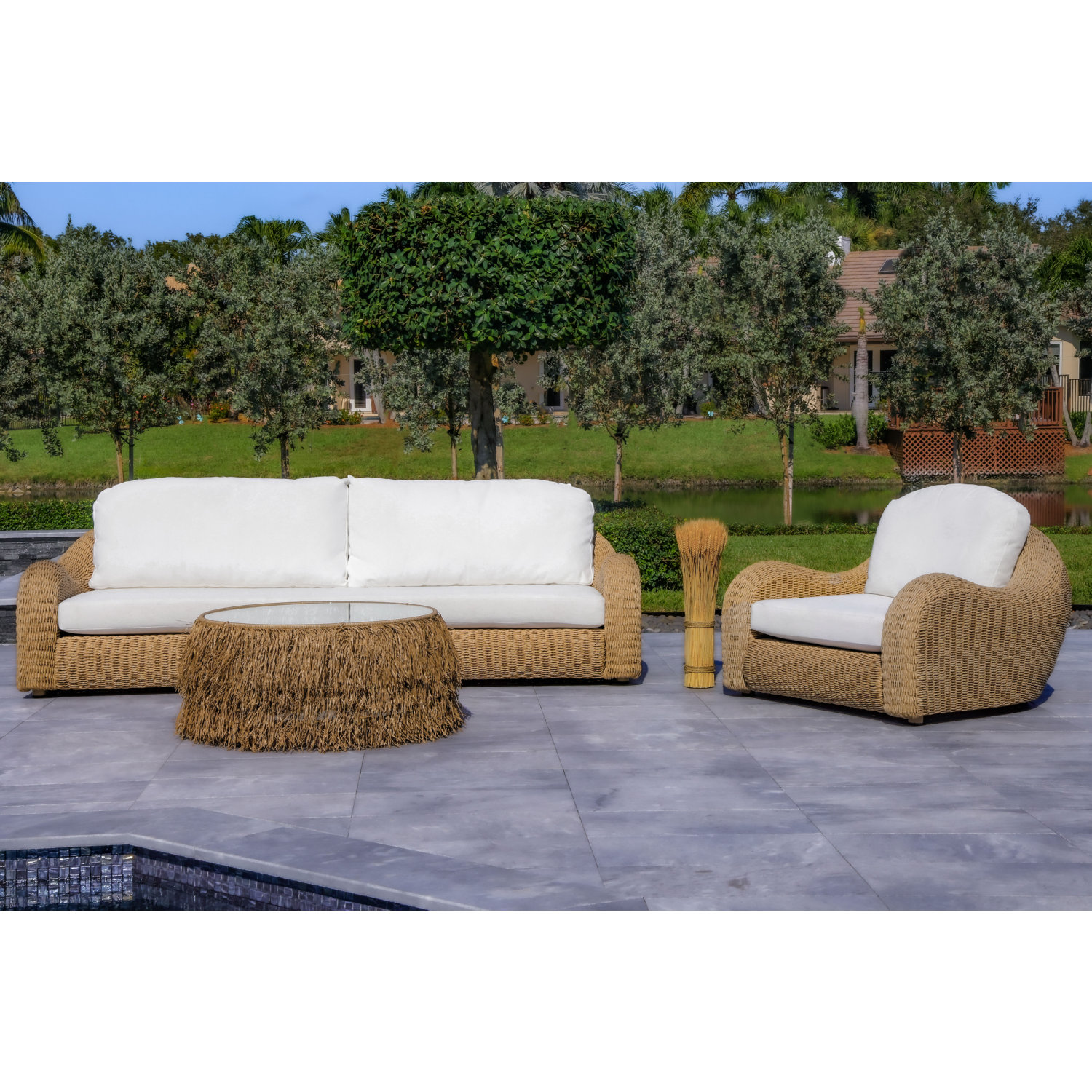• Includes: One Outdoor Sofa, One Outdoor Lounge Chair, One Outdoor Table