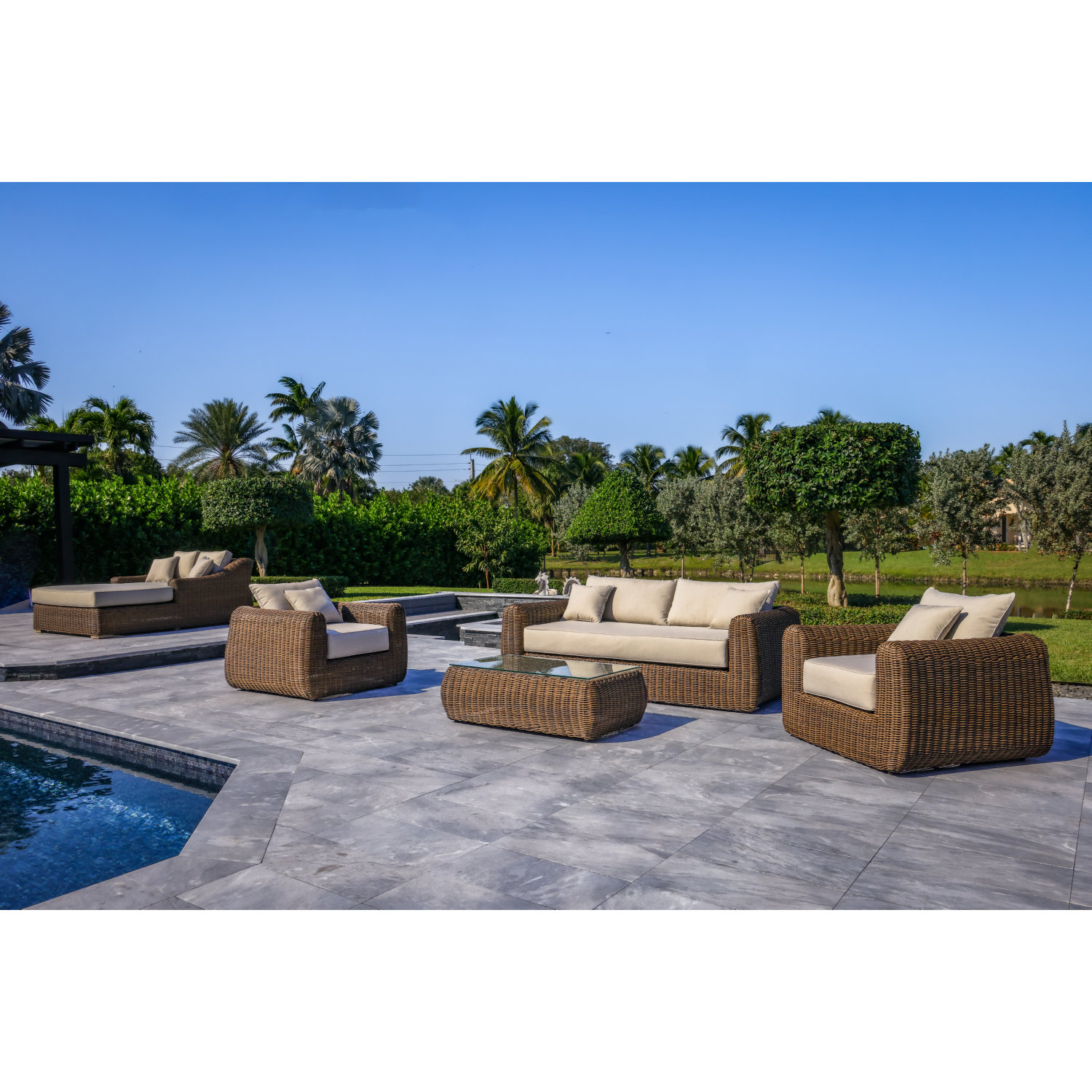 OUTSY 0AMI-R02-BR-R-LUX Milo Lux 4 Piece Outdoor Sofa Set Brown PE Wicker Beige Sunbrella Fabric