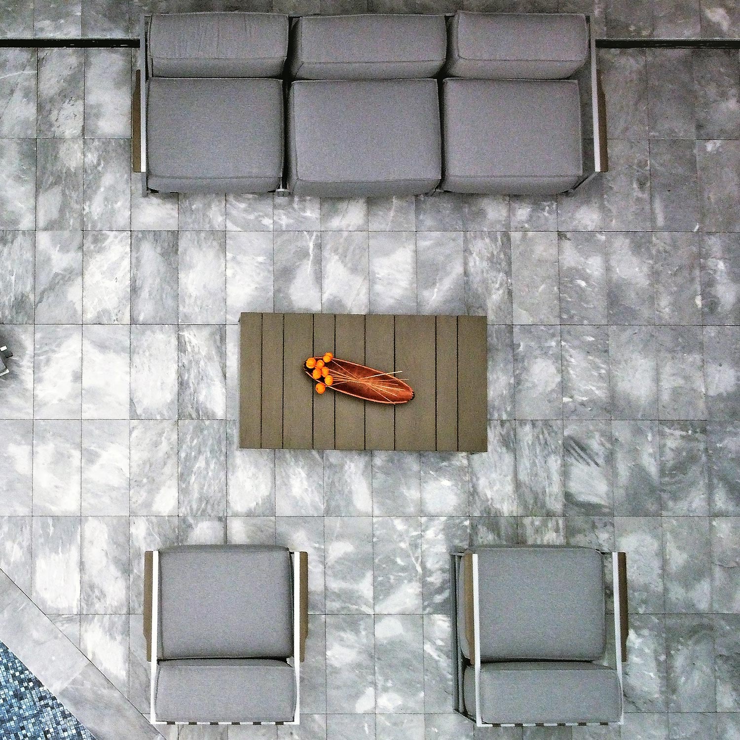 OUTSY Sunrise 6 Piece Outdoor Sofa Set in Grey Sunbrella Fabric & Stainless Steel