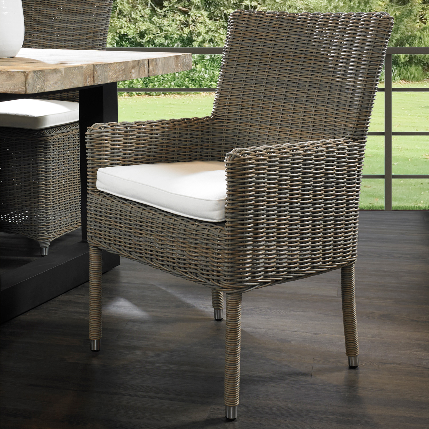 Padma's Plantation Outdoor Boca Arm Dining Chair in Resin Wicker & White Fabric (Set of 2)
