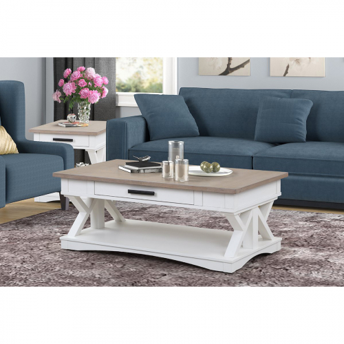 Parker House Americana Modern Coffee Cocktail Table in Cotton White & Oak